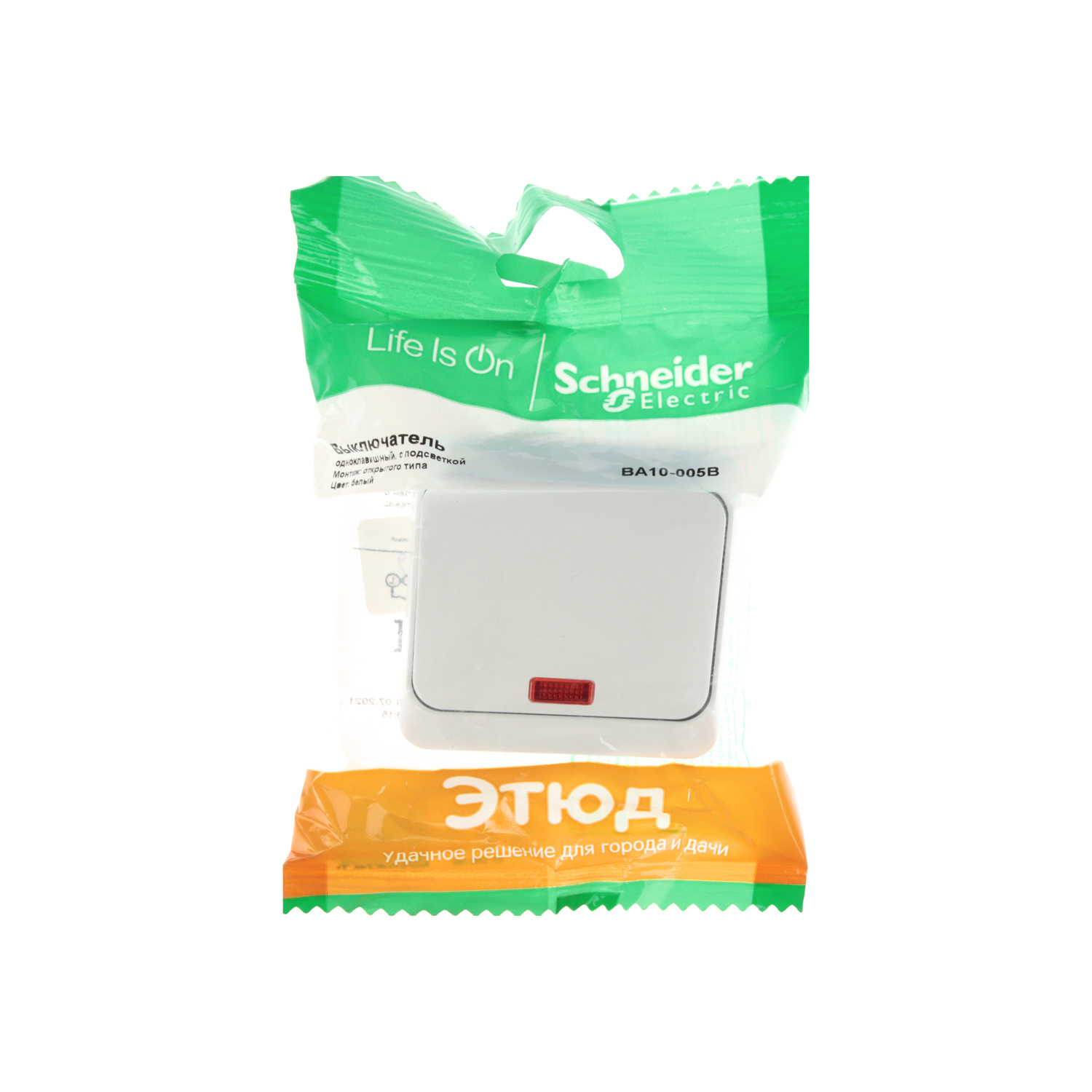 Выключатель "Этюд" ОП 1кл. белый с подсветкой ВА10-005В *10/25