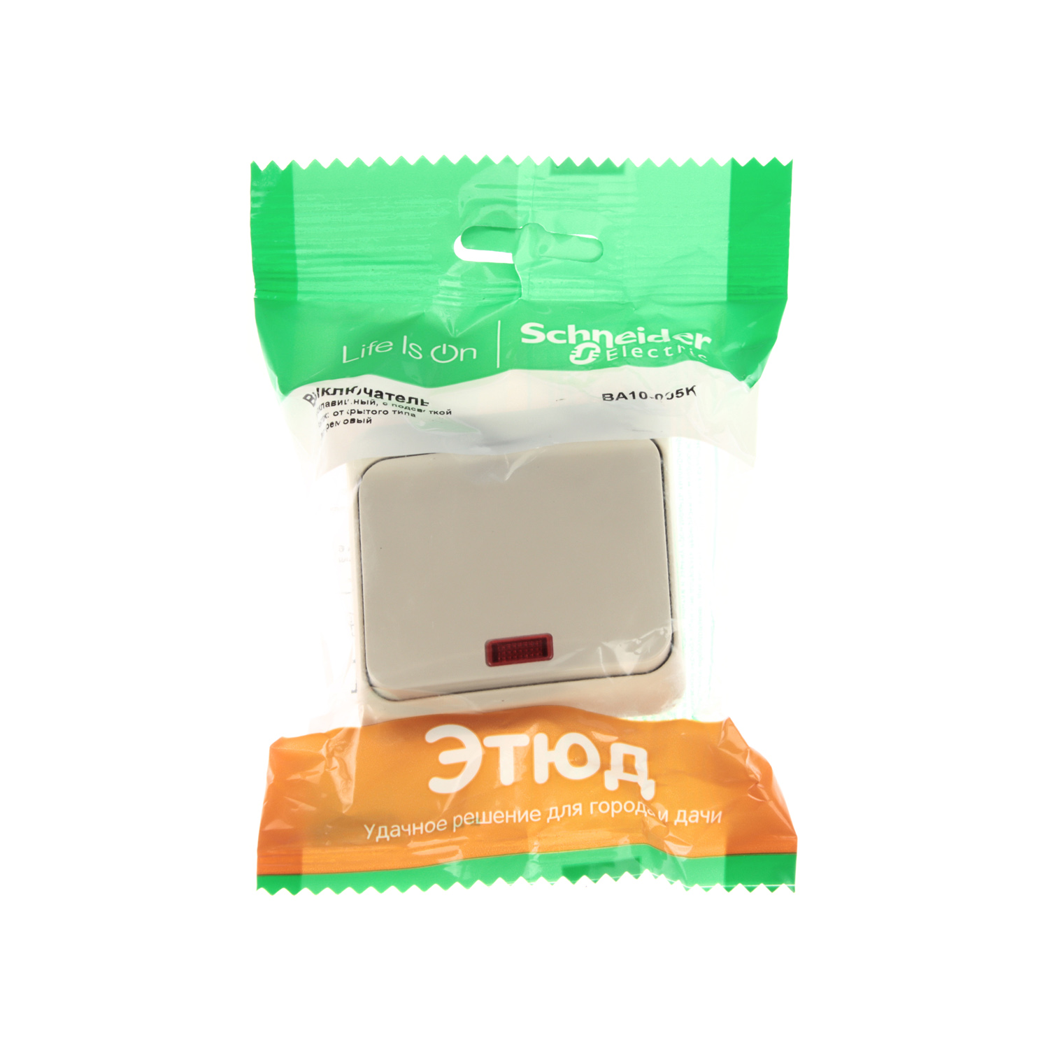 Выключатель "Этюд" ОП 1кл. кремовый с подсветкой ВА10-005К *10/25