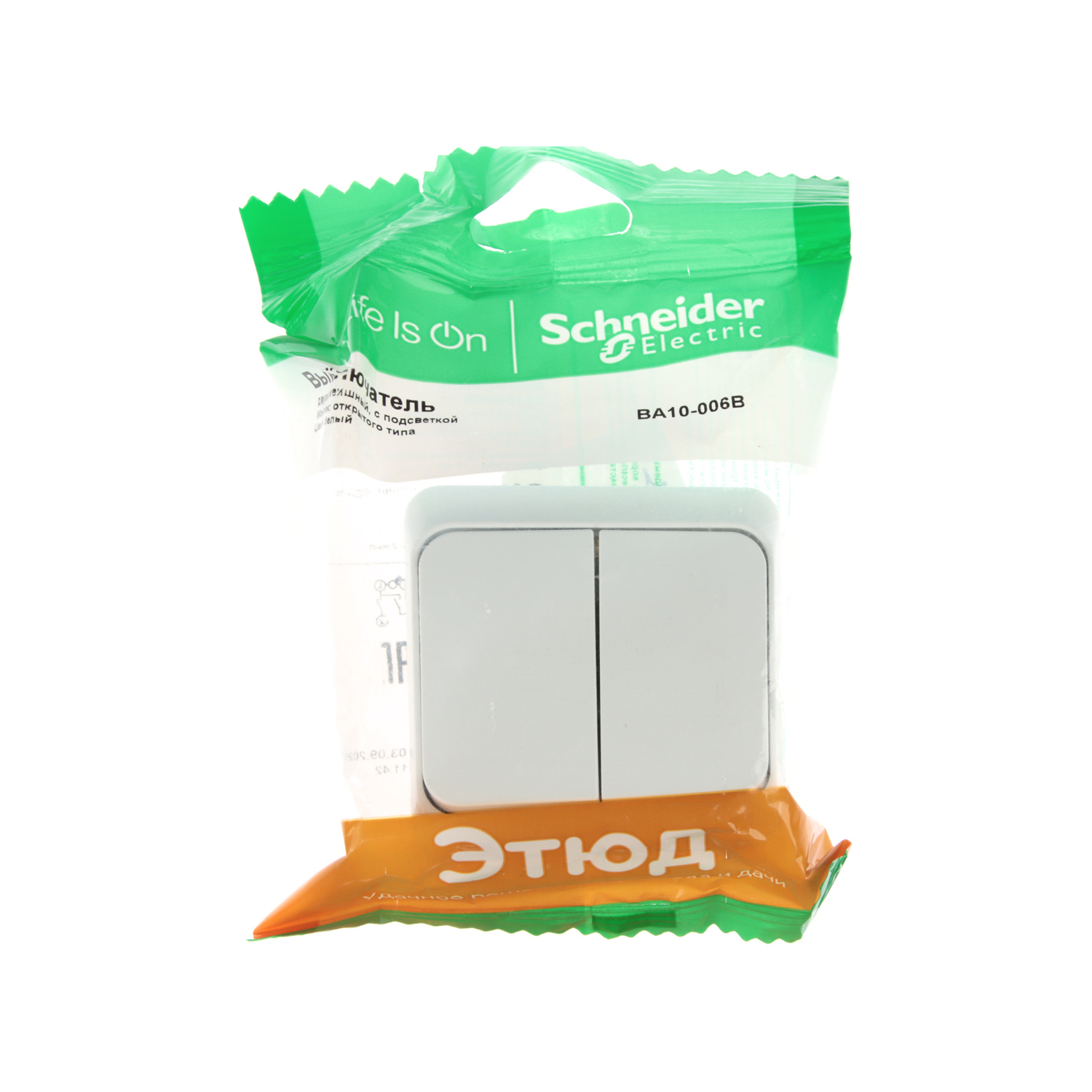 Выключатель "Этюд" ОП 2кл. белый с подсветкой ВА10-006В *10/25