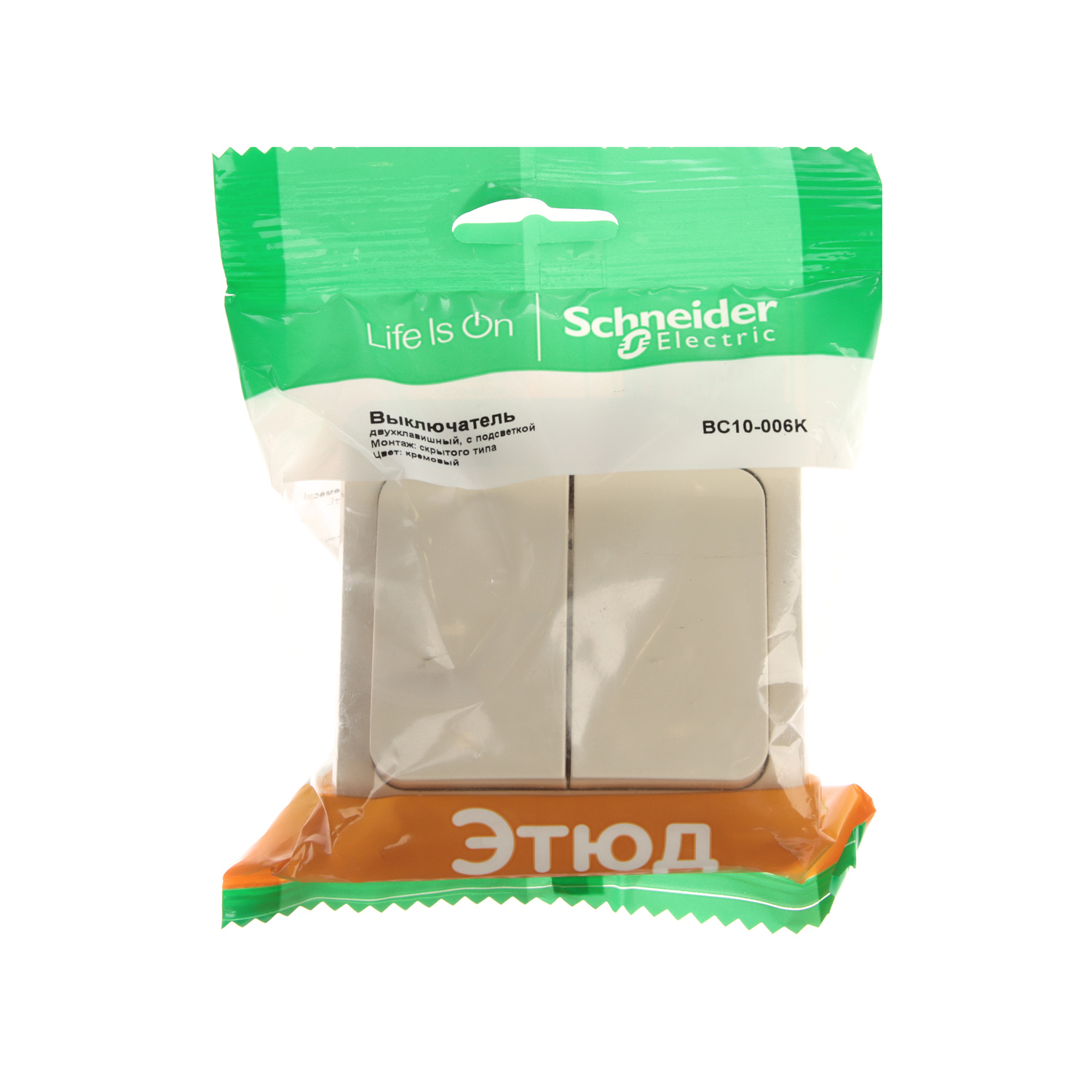 Выключатель "Этюд" СП 2кл. кремовый с подсветкой ВС10-006К *10/20