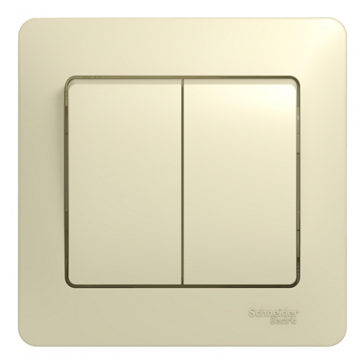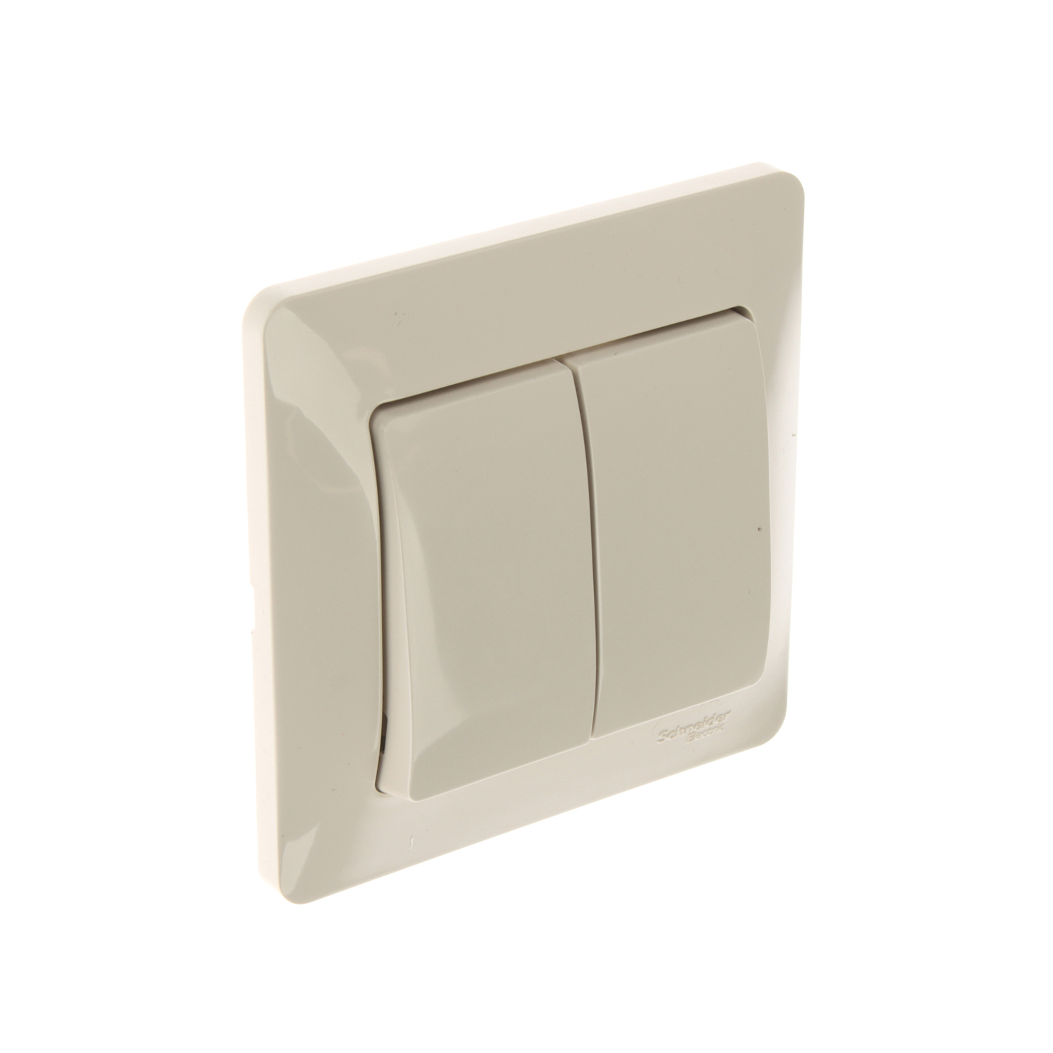 Выключатель Schneider Electric Glossa (в сборе, цвет бежевый) двухклавишный подходит для сетей 250 В, на ток 10 А.