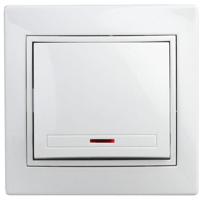 Выключатель одноклавишный с подсветкой, 10А-250В, IP20, СУ, белый Intro Plano 1-102-01