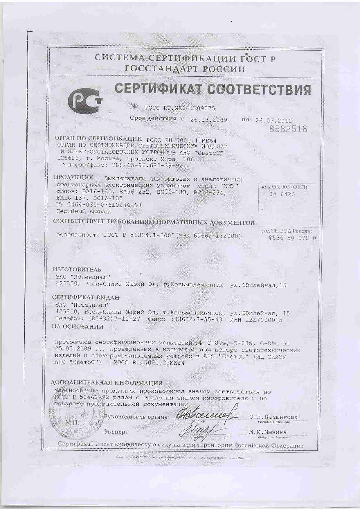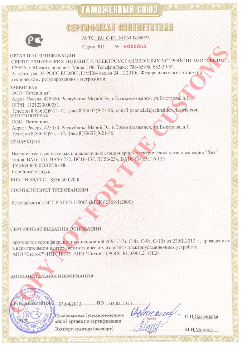 Тип номенклатуры Выключатель