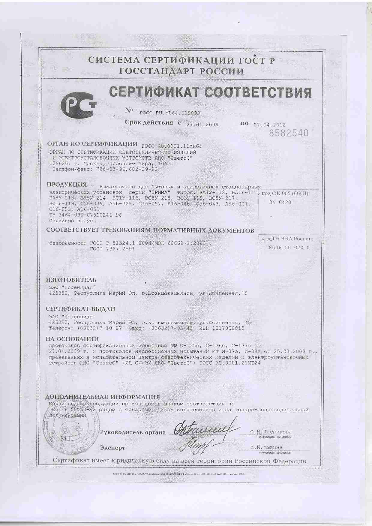 Тип номенклатуры Выключатель