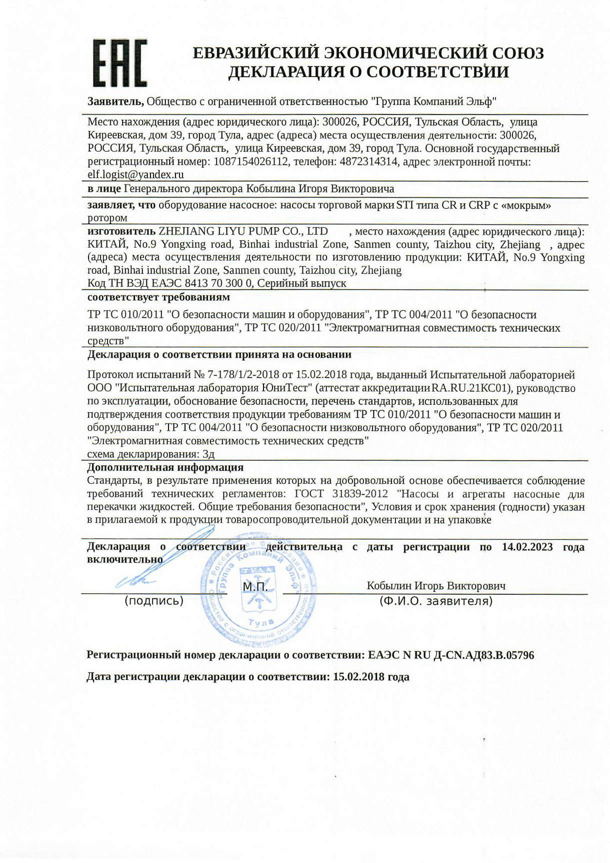 Обмотки электродвигателя снабжены защитой полного сопротивления. Имеется подключение для заземления наружного корпуса насоса.