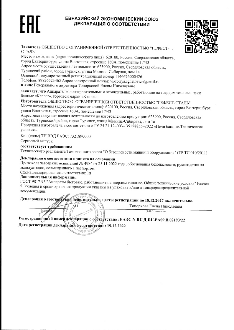 "Банная печь предназначена для обогрева парильного помещения объемом до 14 куб.м.,