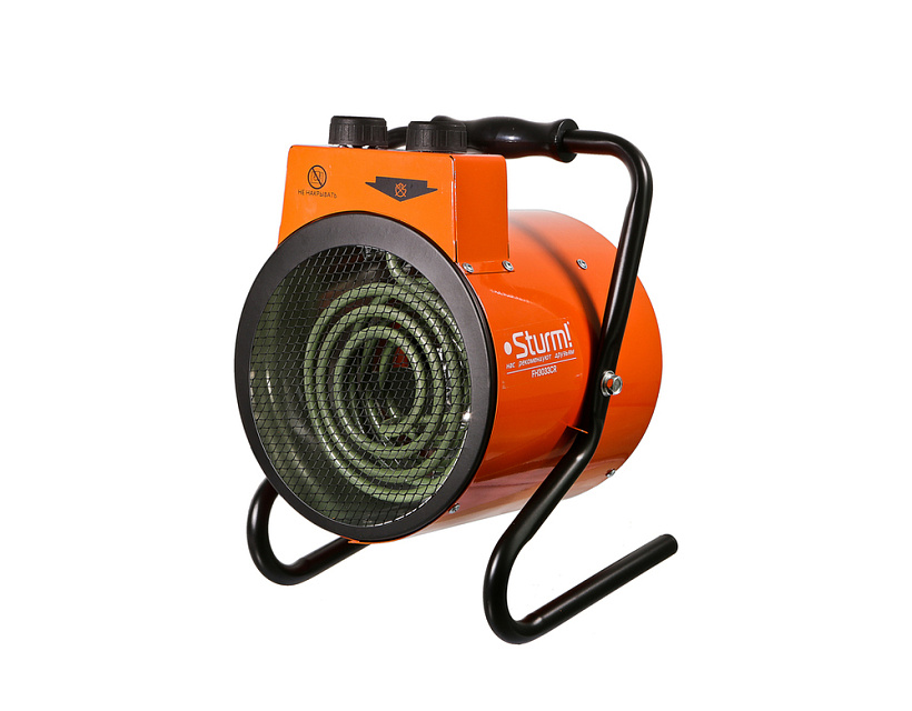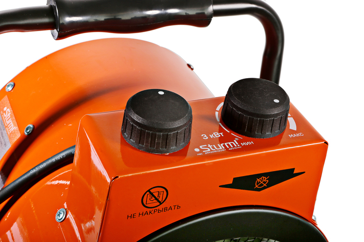 Sturm! FH3033CR — электрическая тепловая пушка мощностью 3 кВт и с производительностью воздушного потока 185 м3/ч. Предназначена для временного или постоянного обогрева жилых, производственных и вспомогательных помещений площадью до 40 м2. Модель выполнена в прочном металлическом корпусе, устойчивом к возможным механическим повреждениям и имеет широкую опорную подошву, предотвращающую случайное опрокидывание. Небольшие габариты и вес прибора способствуют удобству его хранения. Тепловая пушка Sturm! FH3033CR оснащена классическим нагревательным элементом спирального типа – он обеспечивает не только быстрый прогрев помещения, но и благодаря своей форме в виде спирали, устойчив к попаданию пыли, и частиц абразива. Наличие встроенного вентилятора позволяет значительно ускорить циркуляцию нагретого воздуха в помещении. Управление прибором осуществляется посредством пары регуляторов, расположенных на верхней панели. С помощью первого регулятора пользователь выбирает один из двух предусмотренных режимов работы: вентиляция без нагрева / горячий обдув. Вторым регулятором производится управление термостатом. Безопасность работы устройства гарантирует защита от перегрева. Для удобства перемещения с места на место, модель оснащена эргономичной рукоятью.