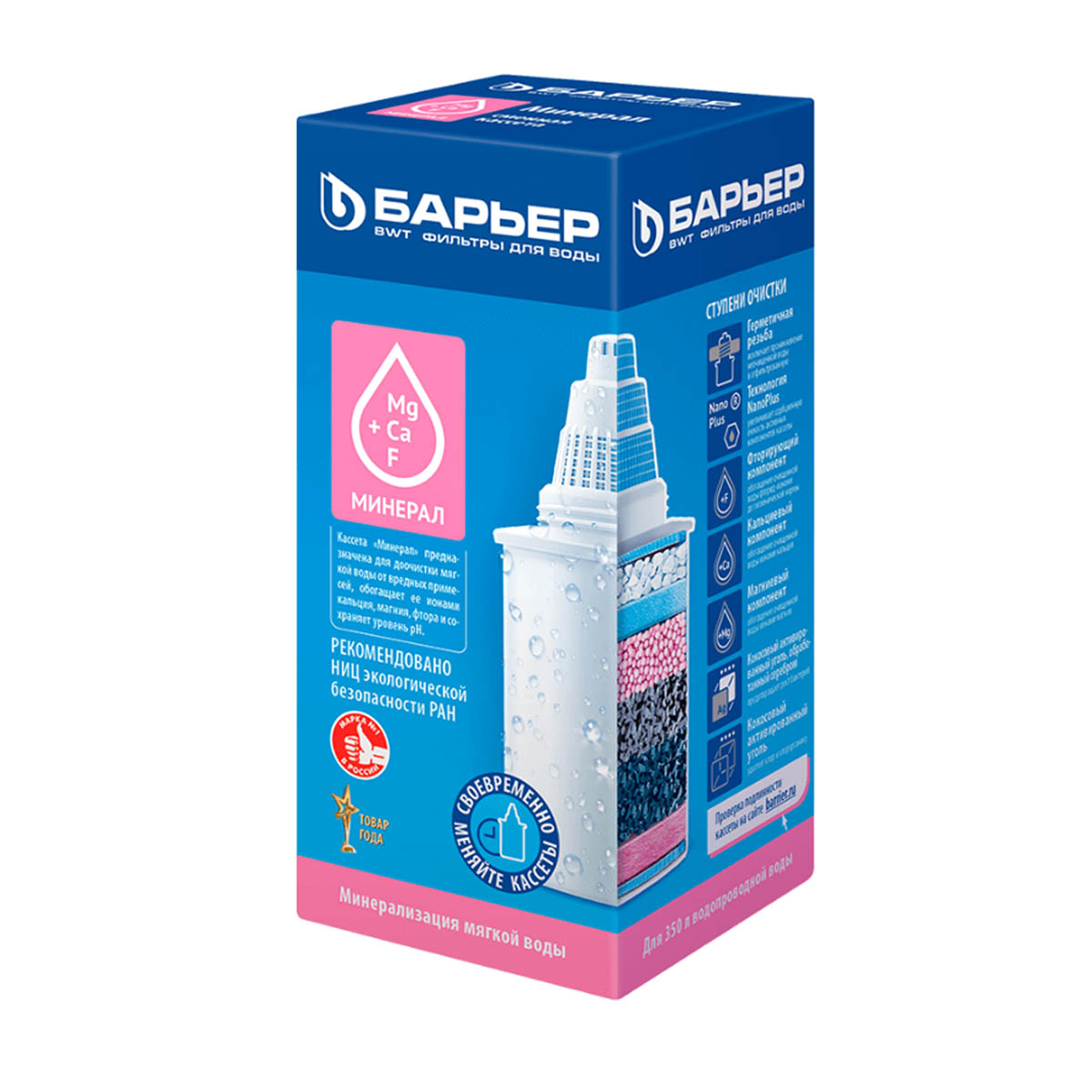 Специализированная очистка мягкой водопроводной воды от хлора и других вредных примесей, обогощение ионами кальция, магния, фтора. Ресурс кассеты 350 л.