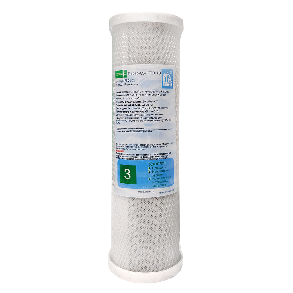 Картридж с прессованным активированным углем CTO-10 удаляет: