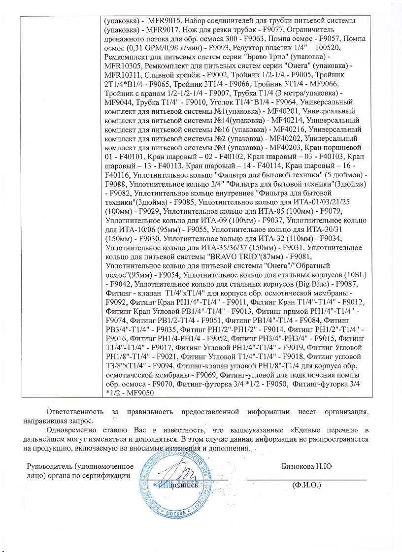 Так же применяется в других оластях: фильтрация технических вод, гальванические ванны, фотоиндустрия, защита бытовых и промышленных умягчителей, защита мембранных систем на обратном осмосе; фильтрация жидкостей, совместимых с полипропиленом.