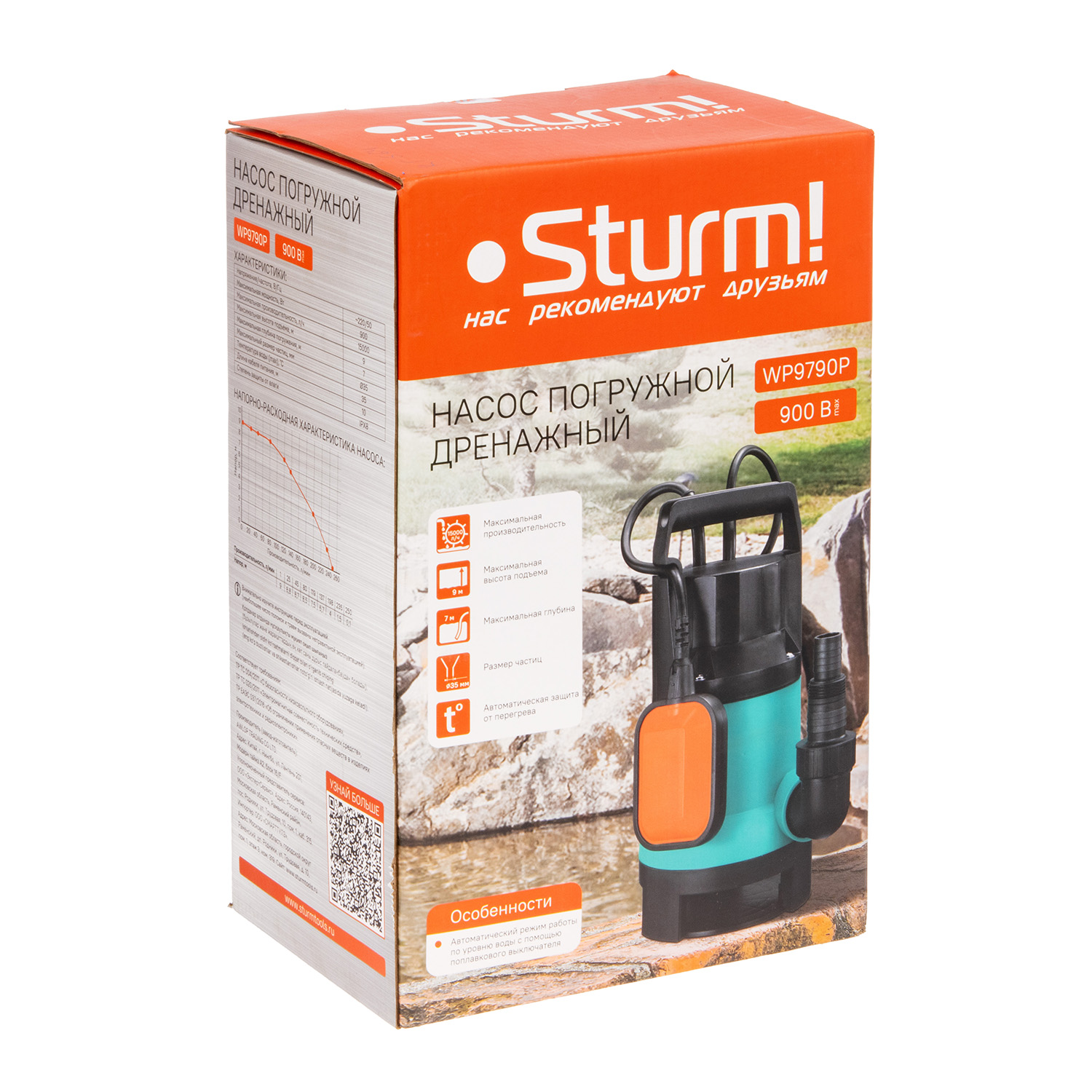 Погружной дренажный насос Sturm WP9790P используется для очищения бассейнов и погребов, полива сада, откачивания грязной воды при строительных работах.