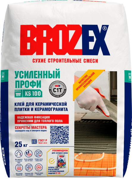 Клей для керамической плитки и керамогранита, выравнивания локальных деформаций глубиной до 12 мм внутри и снаружи помещений. Применим для теплого пола. Качество профессиональной укладки. Классификация клея: С1Т.