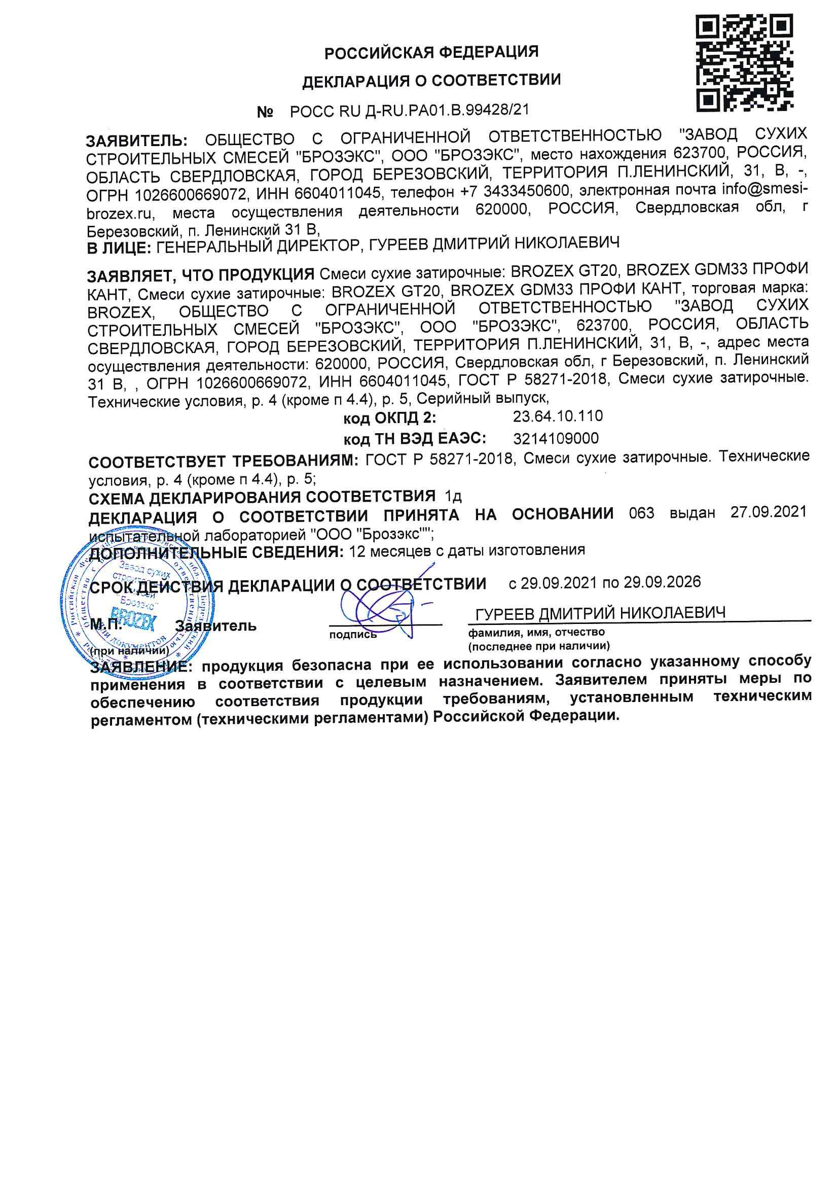 BROZEX GT20 высококачественная сухая строительная затирочная смесь предназначенная для заполнения межплиточных швов облицовки, выполненной из керамической плитки, плитки изготовленной из натурального или искусственного камня, на стенах и полах при внутренних и наружных работах, применяемые при строительстве, реконструкции и ремонте зданий и сооружений. Характеристики: