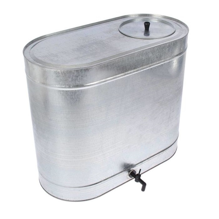 Бак овальный объемом 120 л с краном . Оцинкованный бакподходит для хранения воды. Часто используют под холодную воду в бане. В комплекте: кран, крышка, пимпочка для крышки.
