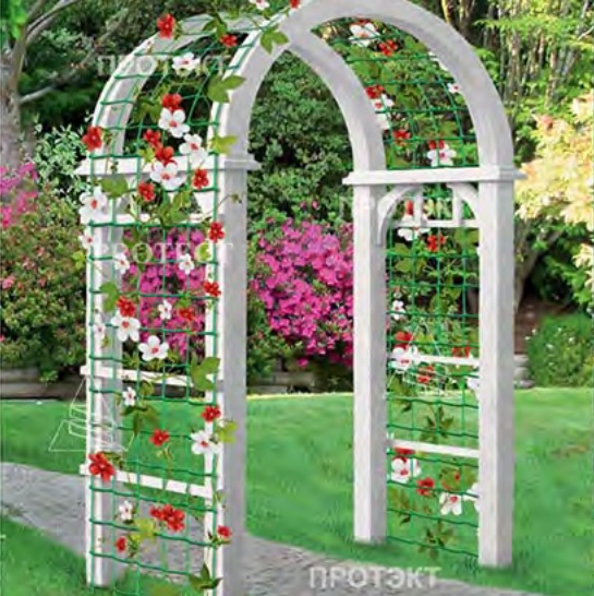 Сетка применяется для поддержки вьющихся многолетних растений, таких как плетистая роза, декоративный виноград, жимолость, лимонник.