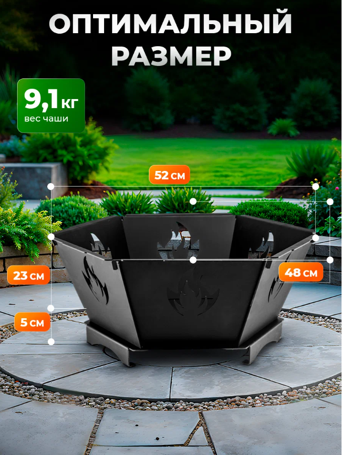 Разборная чаша из 6 сегментов и основания. Сьемный сегмент для удаления золы