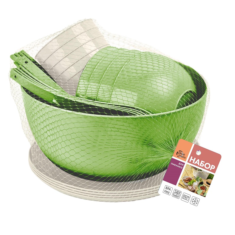 Набор для пикника и барбекю на 4 персоны – это все, что нужно для загородной поездки или шашлыка на даче. Легкую пластиковую посуду удобно взять с собой. Она не бьется и за ней просто ухаживать, поэтому она будет хороша и для детских мероприятий. Прочный пластик подходит для многократного использования. Изготовлена из безопасного пищевого материала, который подходит для маринадов и горячего. Привлекательный дизайн и цвета дополнят радостные моменты на природе. Комплектация: салатник 2,5 л 1 шт., салатник 0,5 л 4 шт., тарелка d200 4 шт., стакан 400 мл 4 шт., столовые приборы: ложки, вилки, ножи х4.