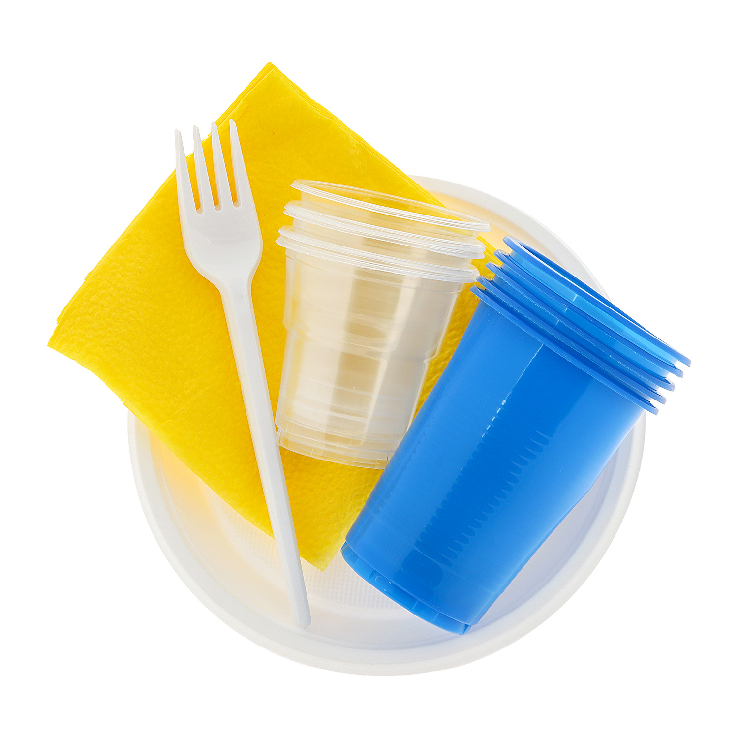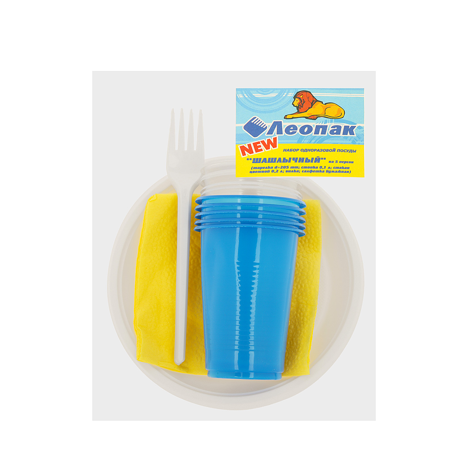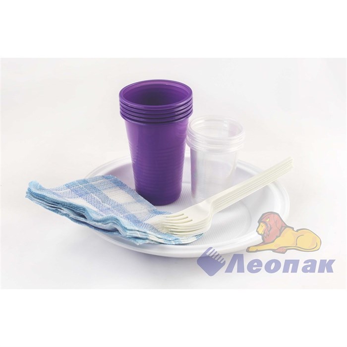 Комплектация Тарелка - 5 шт., стопка - 5 шт., стакан - 5 шт., вилка - 5 шт., салфетка - 5 шт.