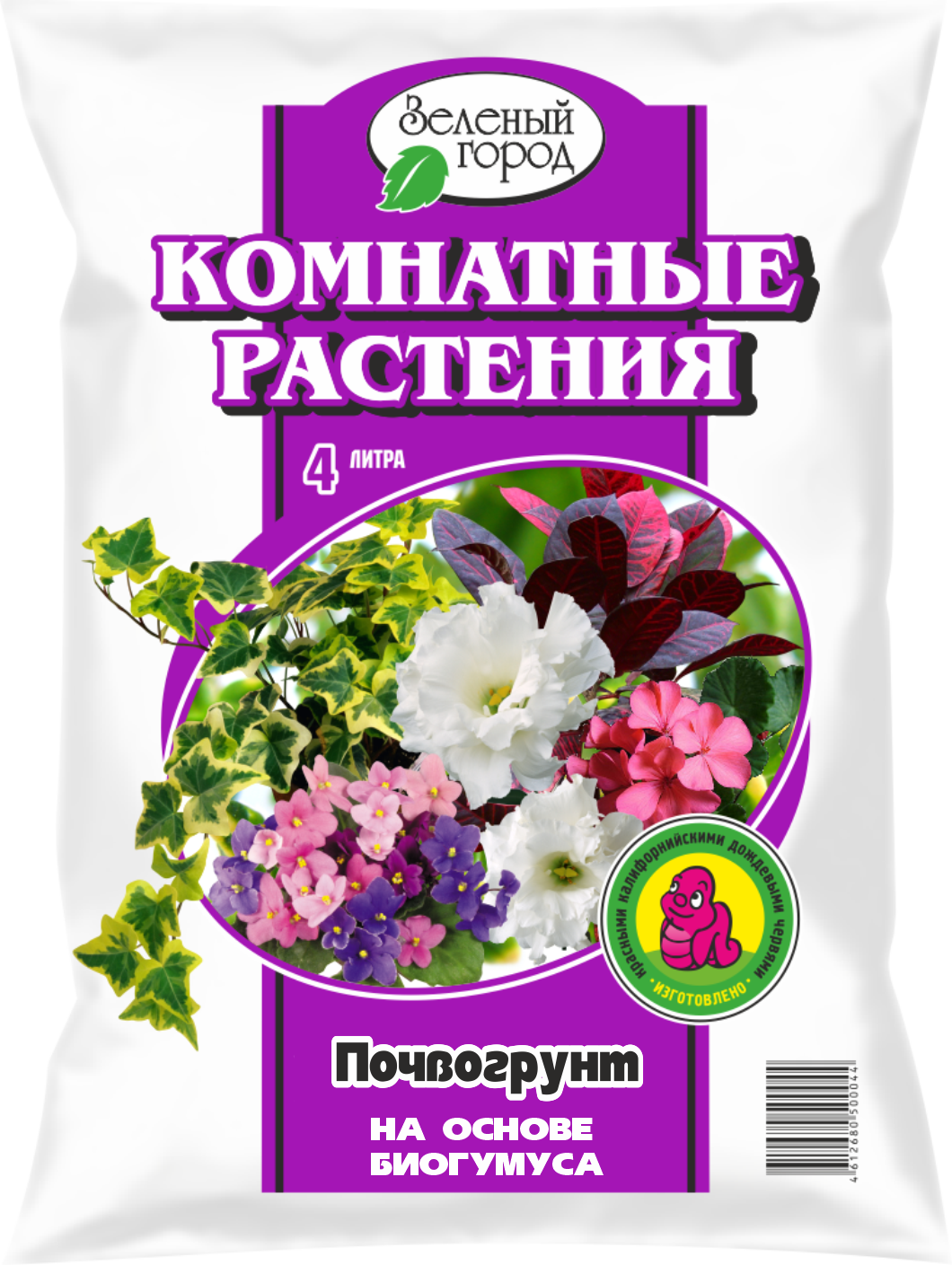 Почвогрунт для цветов 4л "Комнатные растения" на основе биогумуса "Зеленый город" *10/300