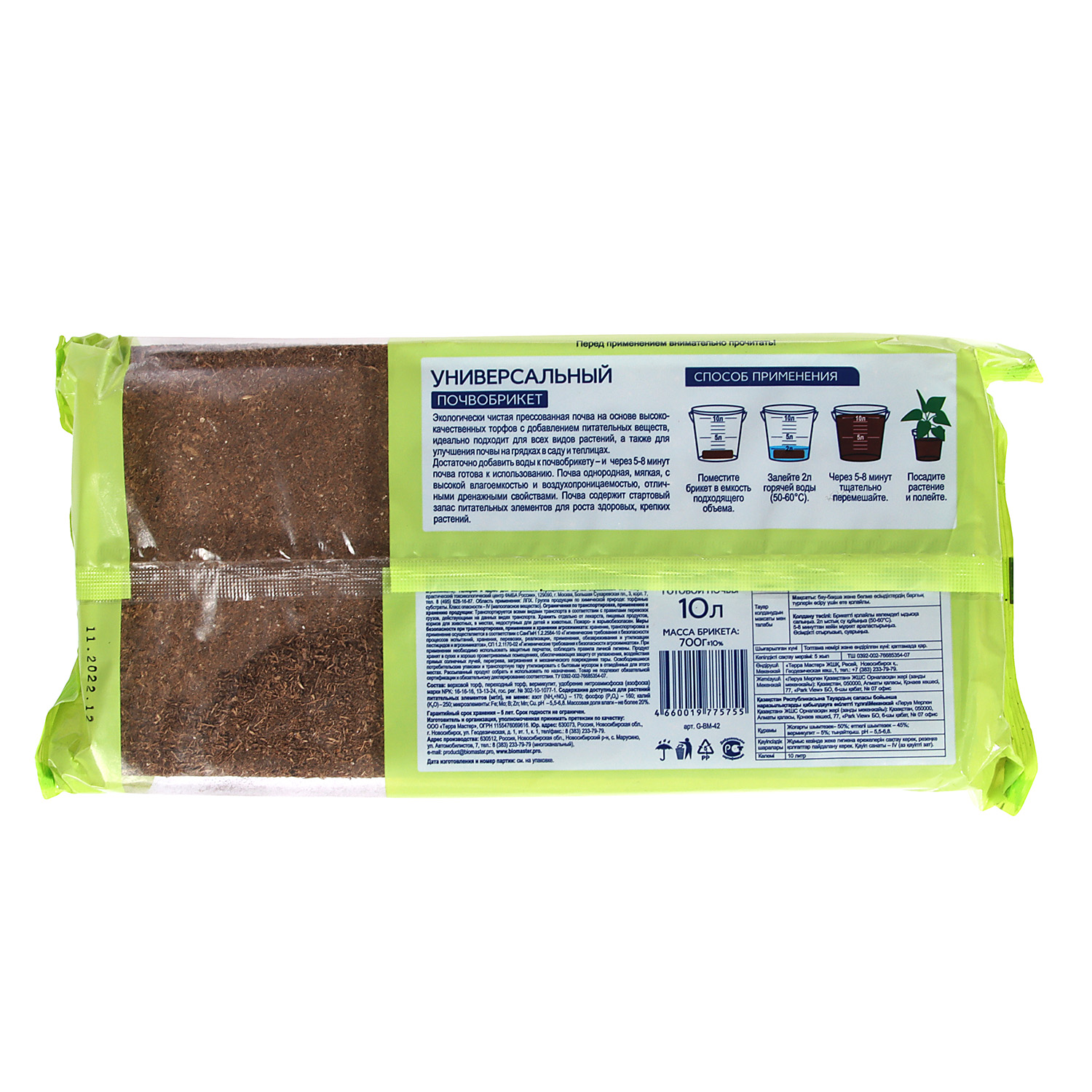 Почвобрикет Универсальный БиоМастер,10 л. - это прессованная почва из природного сырья с оптимальной влагоемкой и воздухопроницаемой структурой для успешного выращивания большинства видов растений, обеспечивает равномерный рост и здоровье растений, обильное цветение и хорошую урожайность.