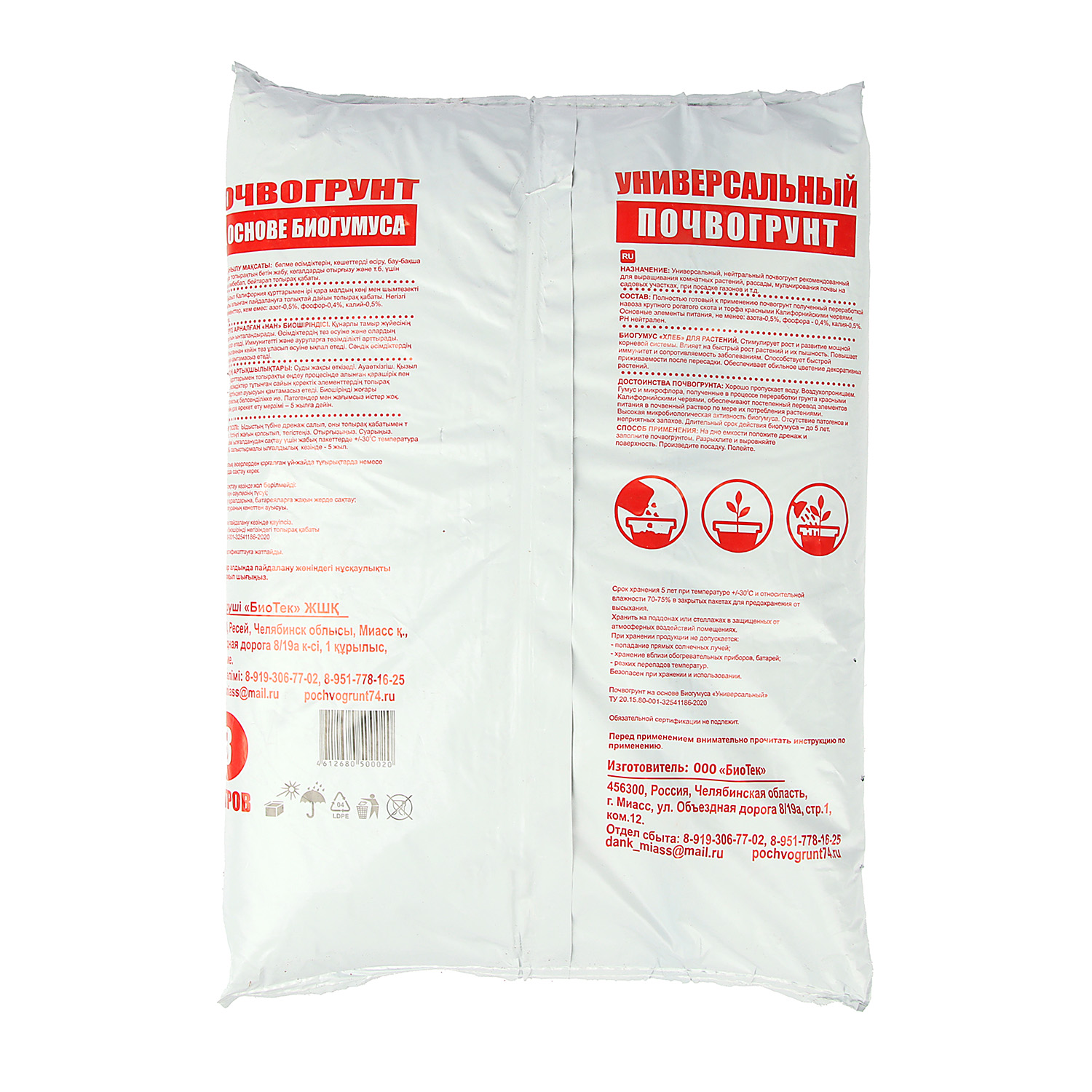 Хорошо пропускает воду. Воздухопроницаемый. Универсальный, полностью готовый, питательный грунт для растений, выращивания рассады, овощей, цветов и мульчирования почвы.
