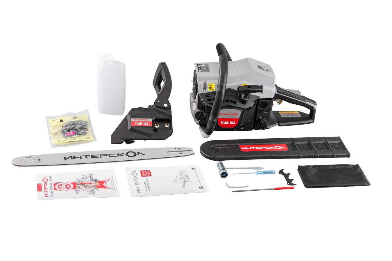 Комплектация:пила бензиномоторная цепная 1 шт., шина 1 шт., цепь 1 шт., чехол пильного аппарата 1 шт., ключ монтажный комбинированный 1 шт., напильник 1 шт., отвертка 1 шт., ключ шестигранный (S3; S4) 2 шт., гайка с буртиком М8 2 шт., винт М5х14 2 шт., упор зубчатый 1 шт., упаковка картонная 1 шт.,Руководство по эксплуатации и Инструкция по безопасности 1 шт., гарантийный талон 1 шт.