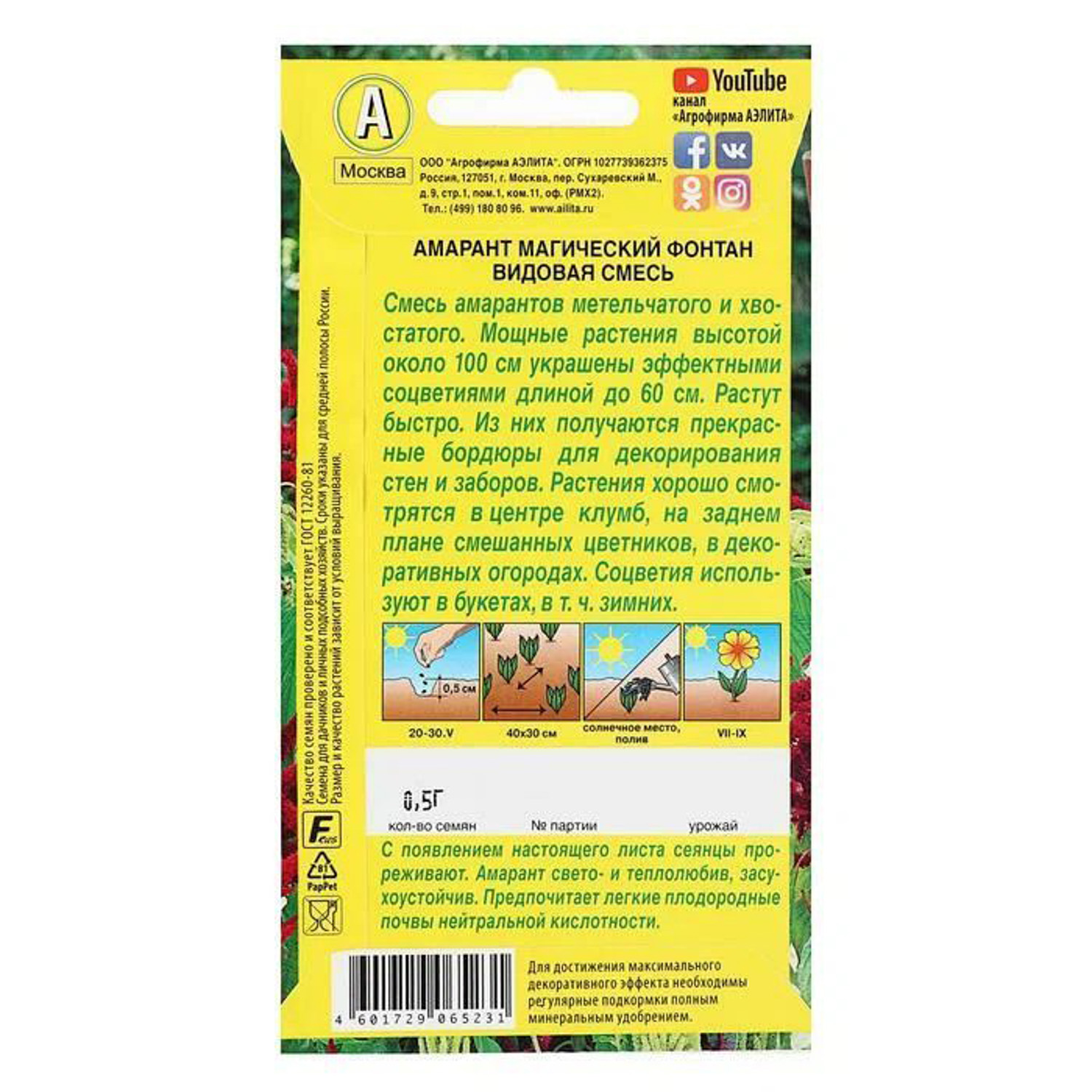 Смесь амарантов метельчатого и хвостатого. Мощные растения высотой около 100 см украшены эффектными соцветиями длиной до 60 см. Растут быстро. Из них получаются прекрасные бордюры для декорирования стен и заборов. Растения хорошо смотрятся в центре клумб, на заднем плане смешанных цветников, в декоративных огородах. Соцветия используют в букетах, в т. ч. зимних.
