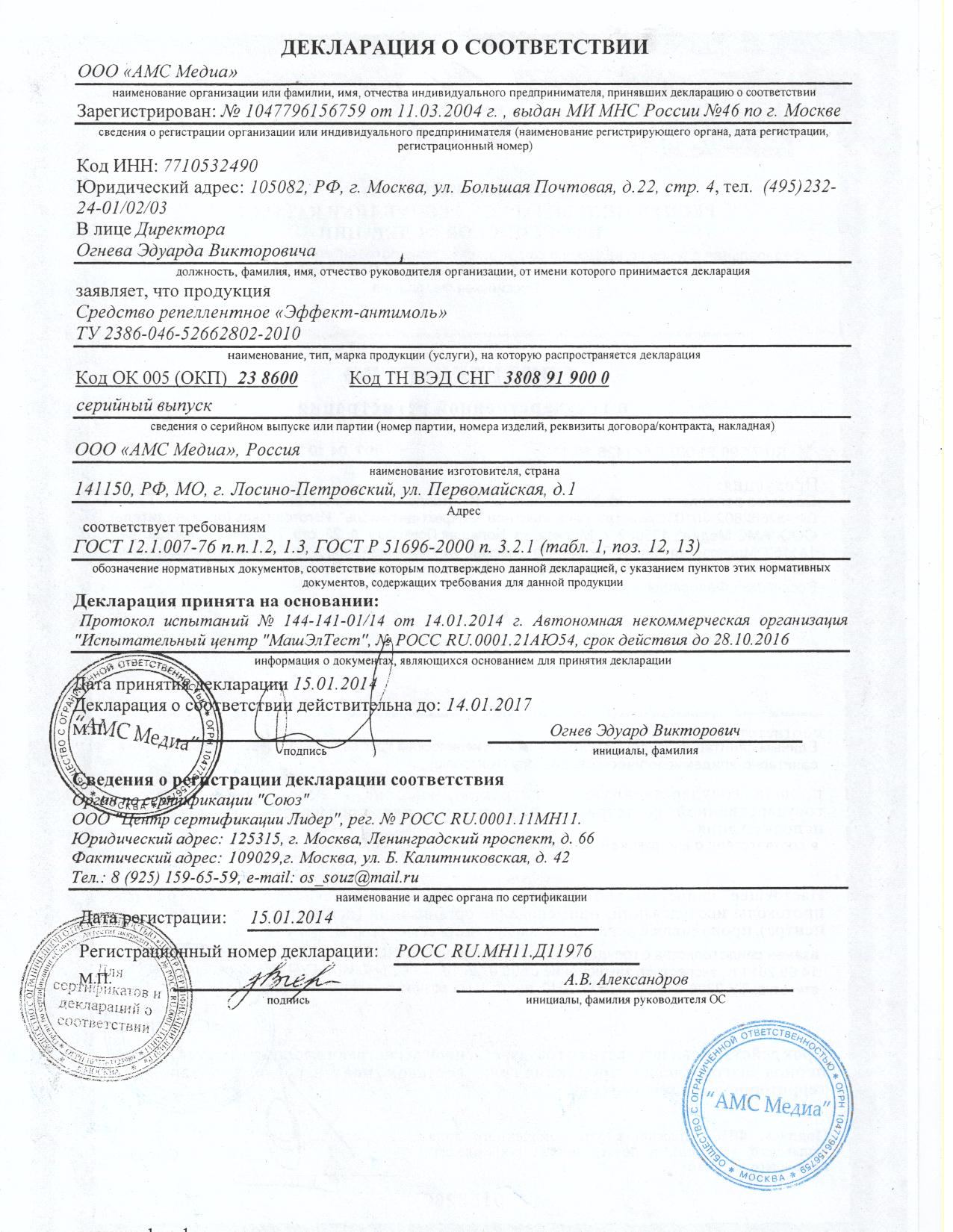 Эффект–Антимоль надежно защищает Вашу одежду, изделия из меха и шерсти от моли и ее личинок, придавая вещам приятный аромат.
