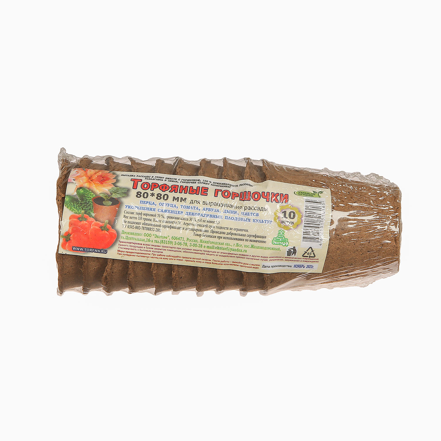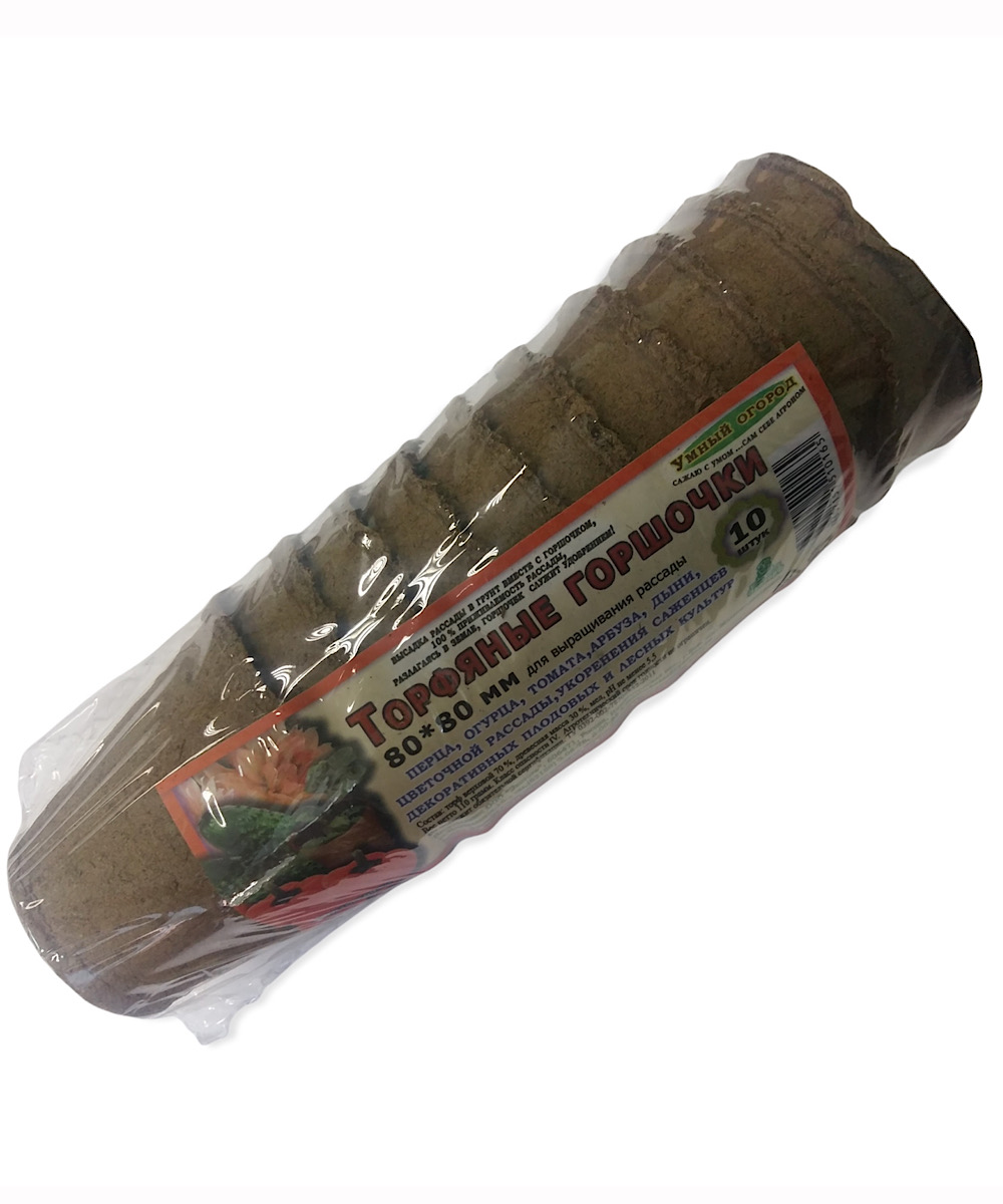 Горшочки торфяные НАБОР 80*80мм круглые (набор из 10шт). Горшочки торфяные полые изготавливаются в соответствии с ТУ 0392-046-02997983-2002 из верхового сфагнового фрезерного торфа с добавками к нему древесной массы, мела (для снижения кислотности торфа). Горшочки обладают достаточной механической прочностью как в сухом, так и в увлажненном состоянии. Горшочки не содержат патогенной микрофлоры и семян сорняков, а содержание токсичных химических веществ: тяжелых металлов, остатков пестицидов и бензпиренов – ниже предельно-допустимых концентраций (ПДК), установленных для почвы, предназначенной для возделывания сельскохозяйственных культур.