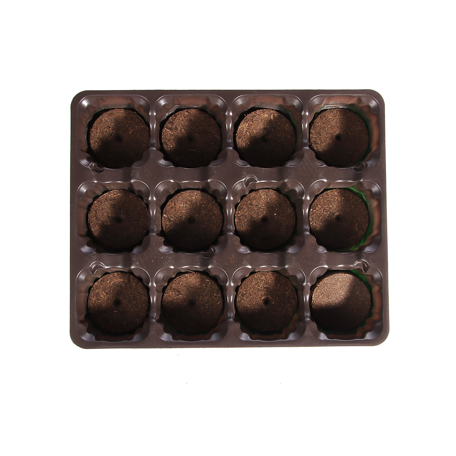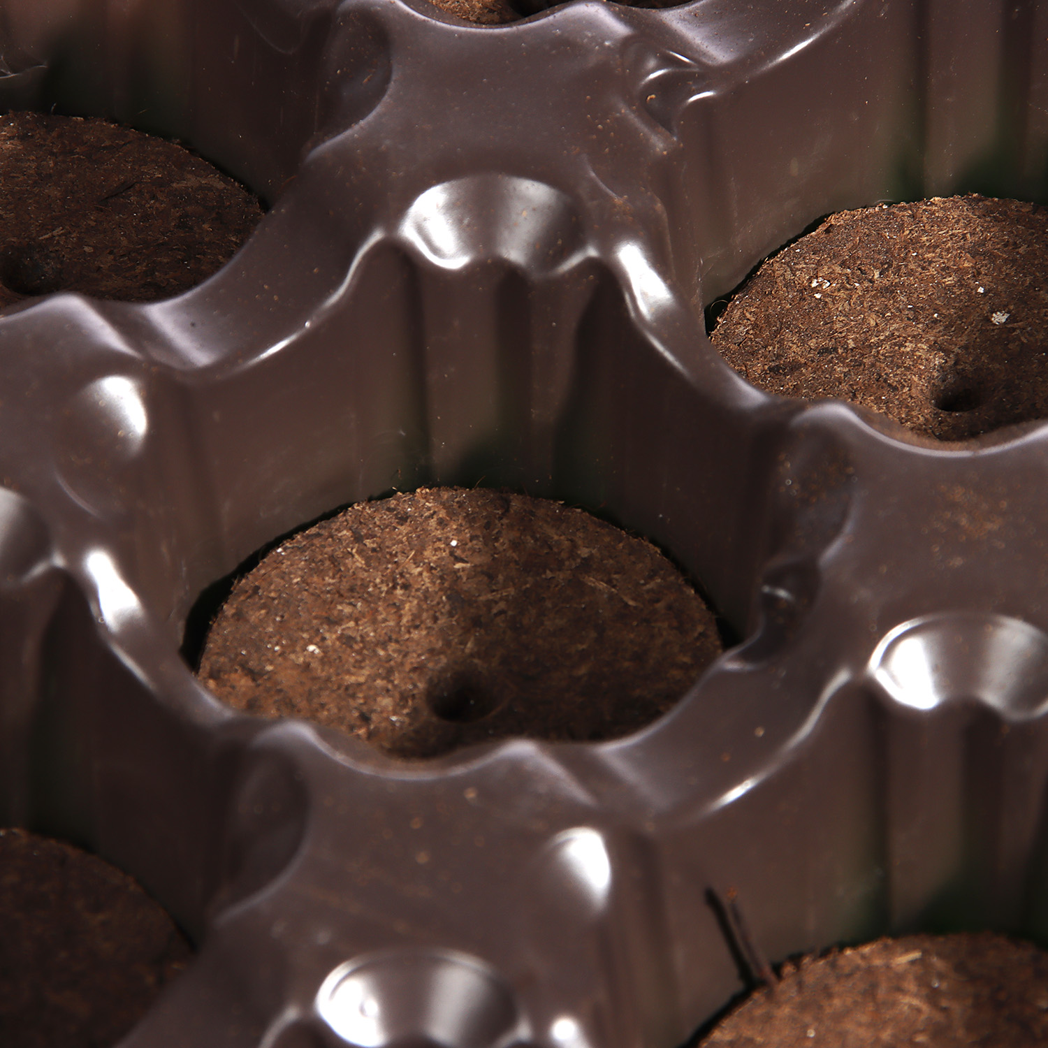 Залейте ячейки с торфяными таблетками теплой водой (40мл на одну ячейку или 0,5л на кассету). После впитывания воды (15-20 мин) таблетки увеличатся в объеме и заполнят ячейки. Поместите семена растений в ячейки, присыпьте торфом и уплотните. При выращивании рассады следите за влажностью грунта.