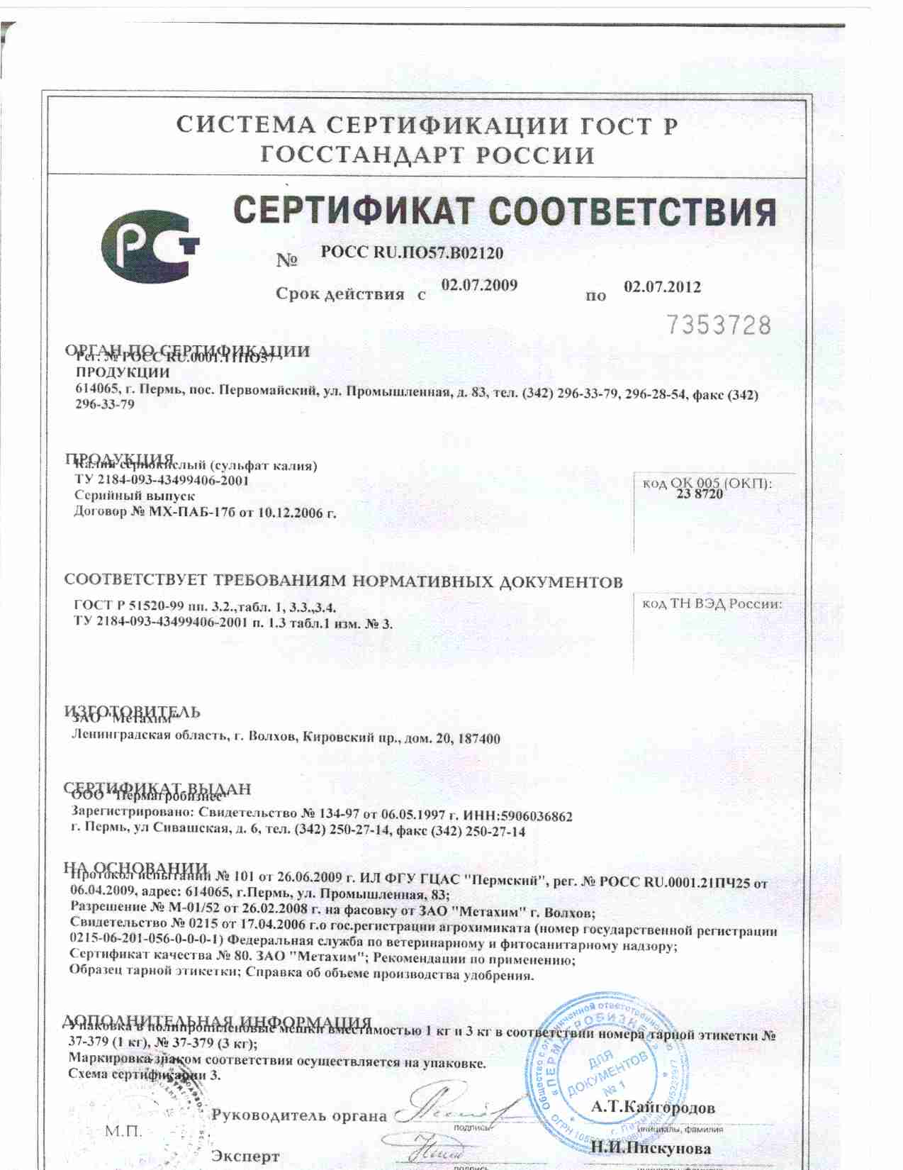 Калий сернокислый (сульфат калия) - бесхлорное калийное удобрение с содержанием калия 50%, хорошо растворимое в воде.