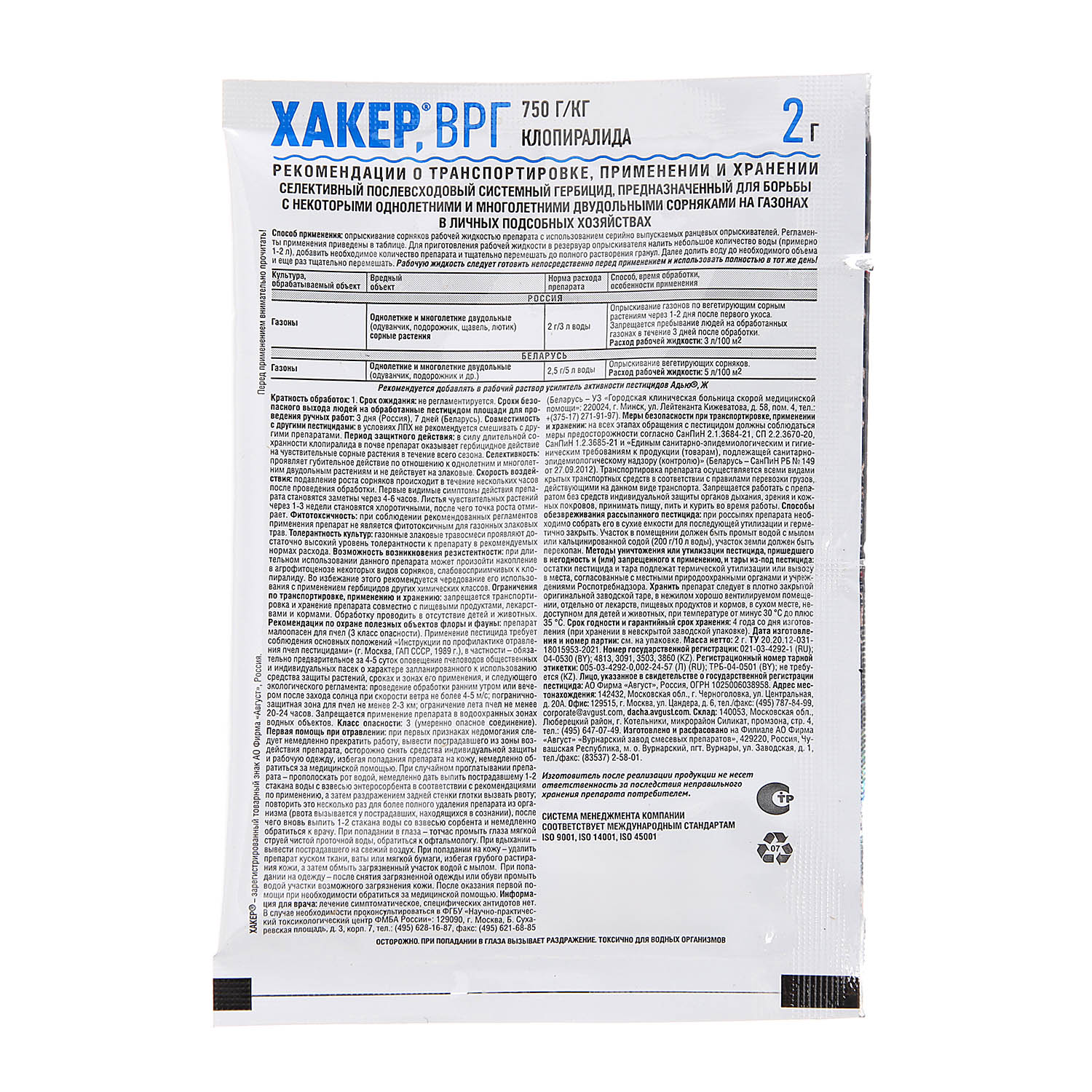 Способ применения: опрыскивание вегетирующих сорняков через 1-2 дня после первого укоса