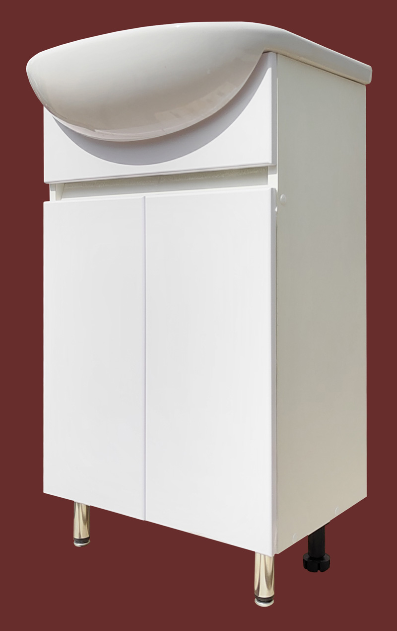 Мебельные фасады с доводчиками (не хлопают), края всех деталей из ДСП защищены водостойкой кромкой ПВХ. Фасады лишены ручек для удобства обслуживания и эстетического вида.