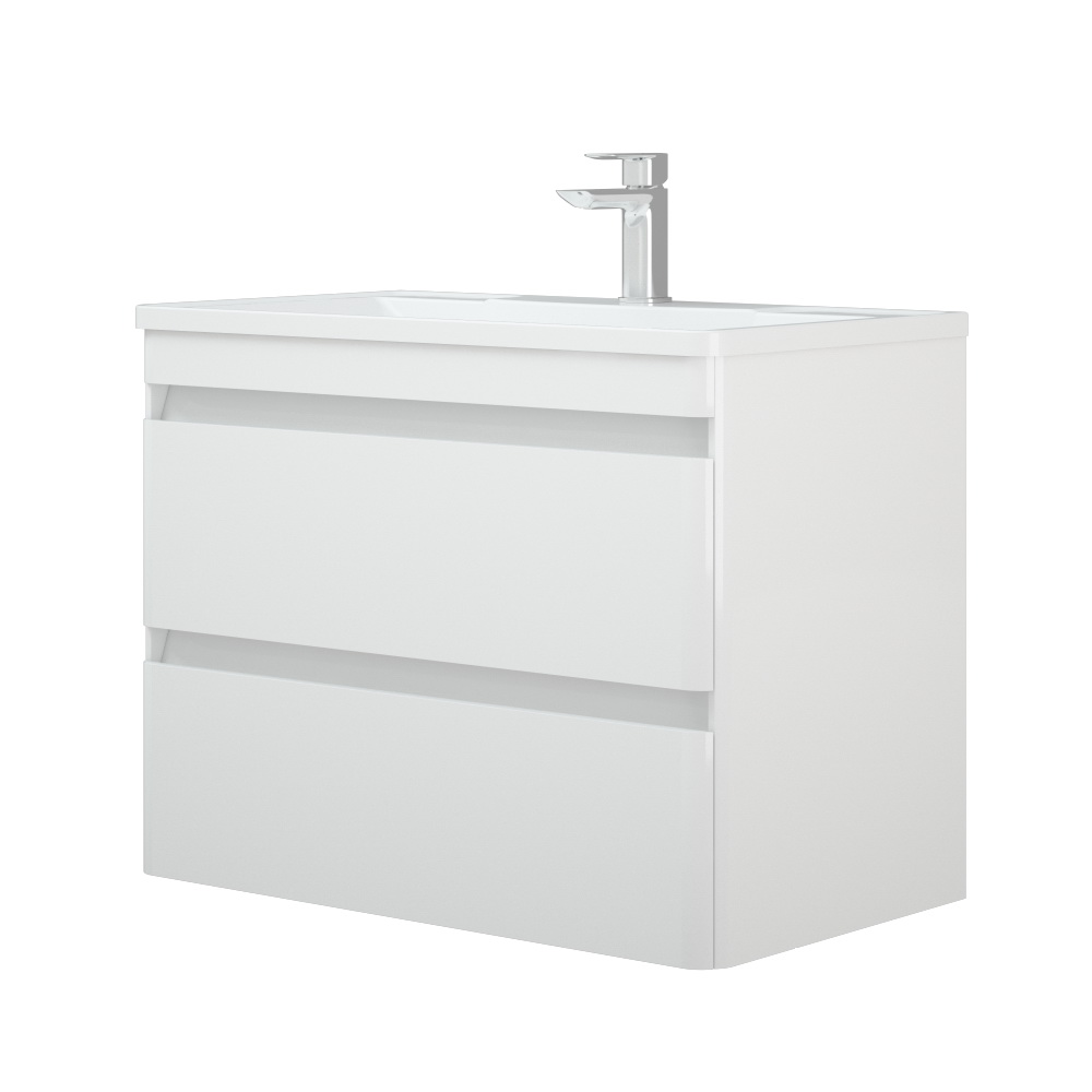 Тумба оснащена 2 выдвижными ящиками на направляющих скрытого монтажа с доводчиками.