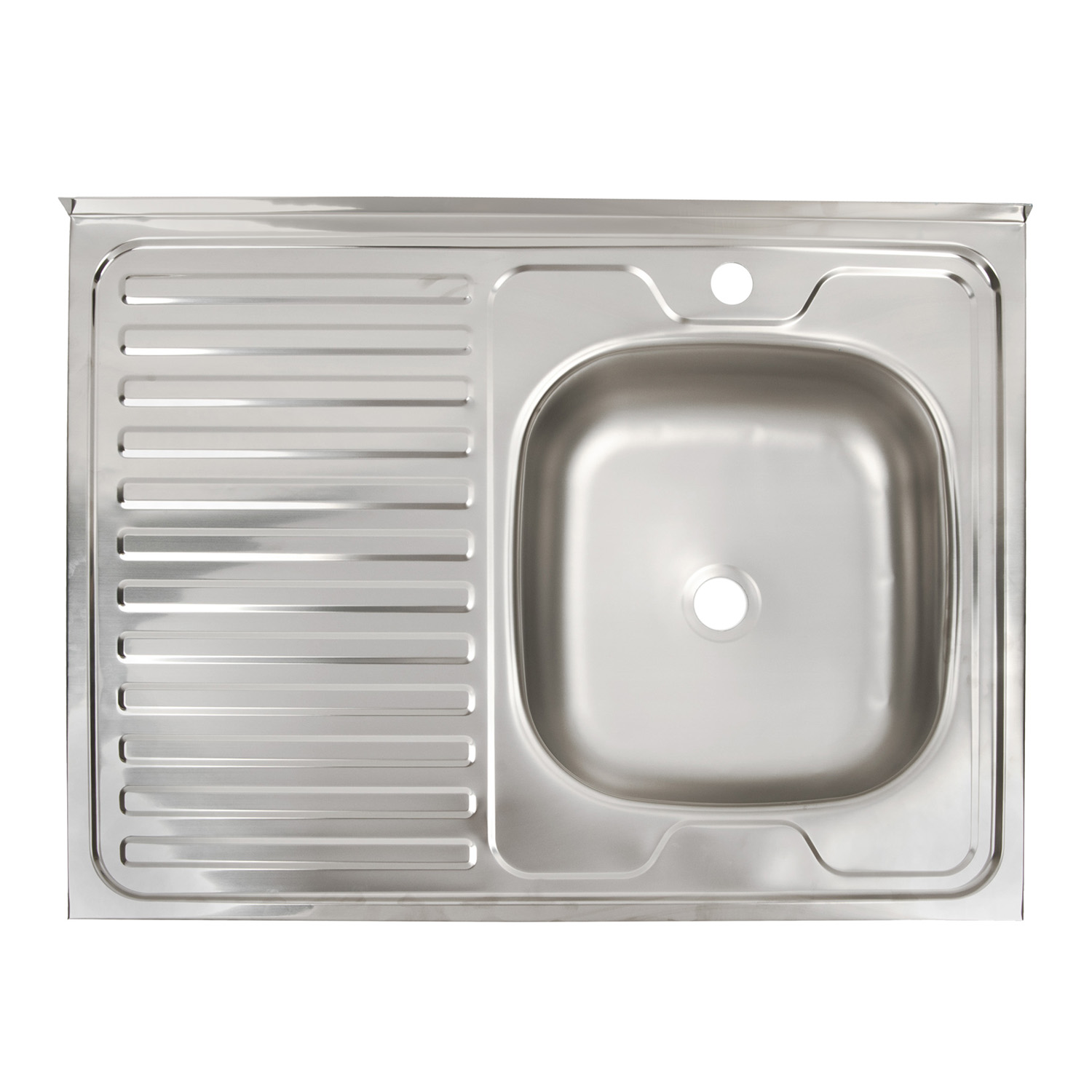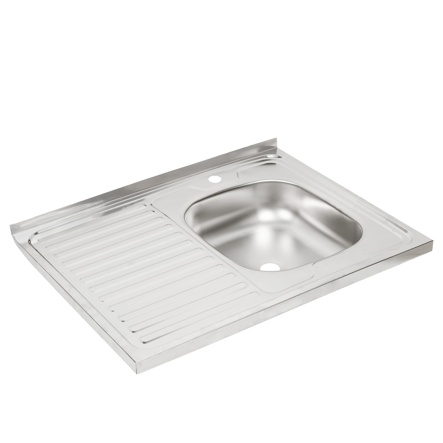 Мойка нерж. накладн.600х800х150мм 0,5 мм ЛЕВАЯ без сифона, выпуск 1 1/2" *1/15