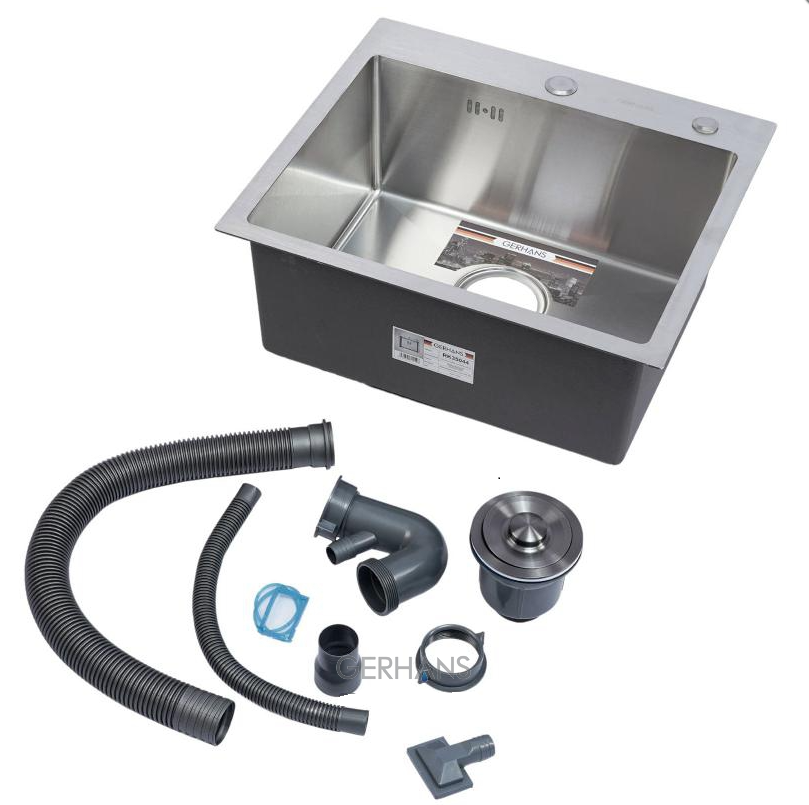 Мойка нерж. врезная 500х440х220мм толщ.1мм, с сифоном, отв. под смеситель, GERHANS *1/5