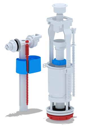 Набор для бачка унитаза. Наливной механизм с боковой подводкой и пластиковой резьбой диаметром 1/2. Сливной механизм белая кнопка с одним режимом слива эконом