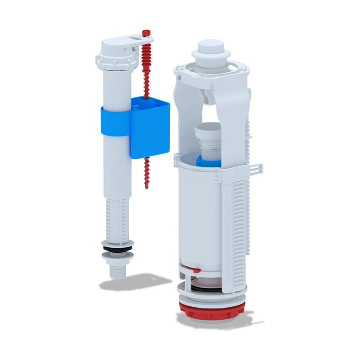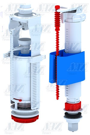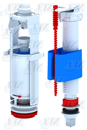 Набор для бачка унитаза. Наливной механизм с нижней подводкой и пластиковой резьбой диаметром 1/2. Сливной механизм белая кнопка с одним режимом слива