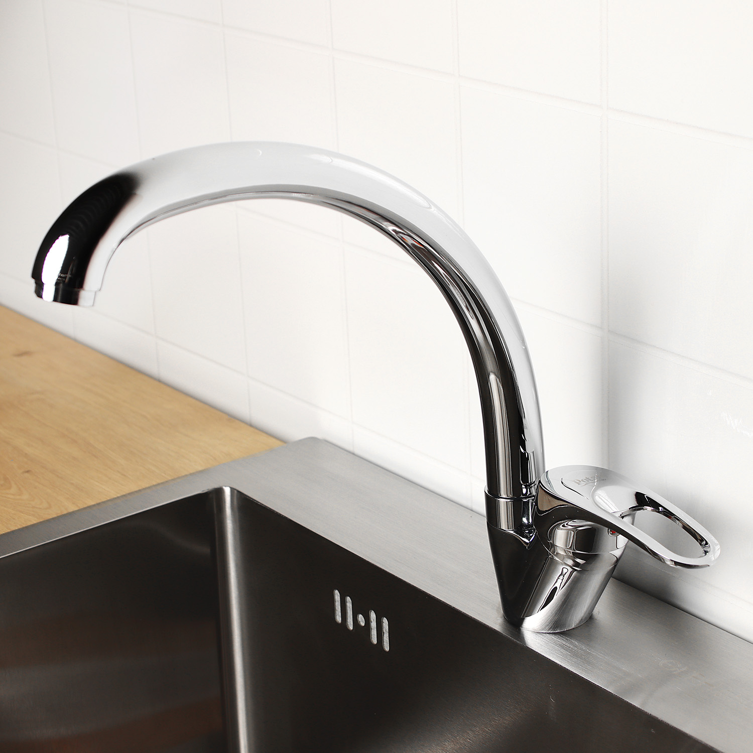 Недорогой, простой в установке смеситель. Установил на кухонную мойку. В комплекте идет крепёж, прокладки, шланги. Установил всё сам, только пришлось покупать шланги подлиннее-это единственный минус. Излив удобный, легко можно набрать воду даже в канистру.