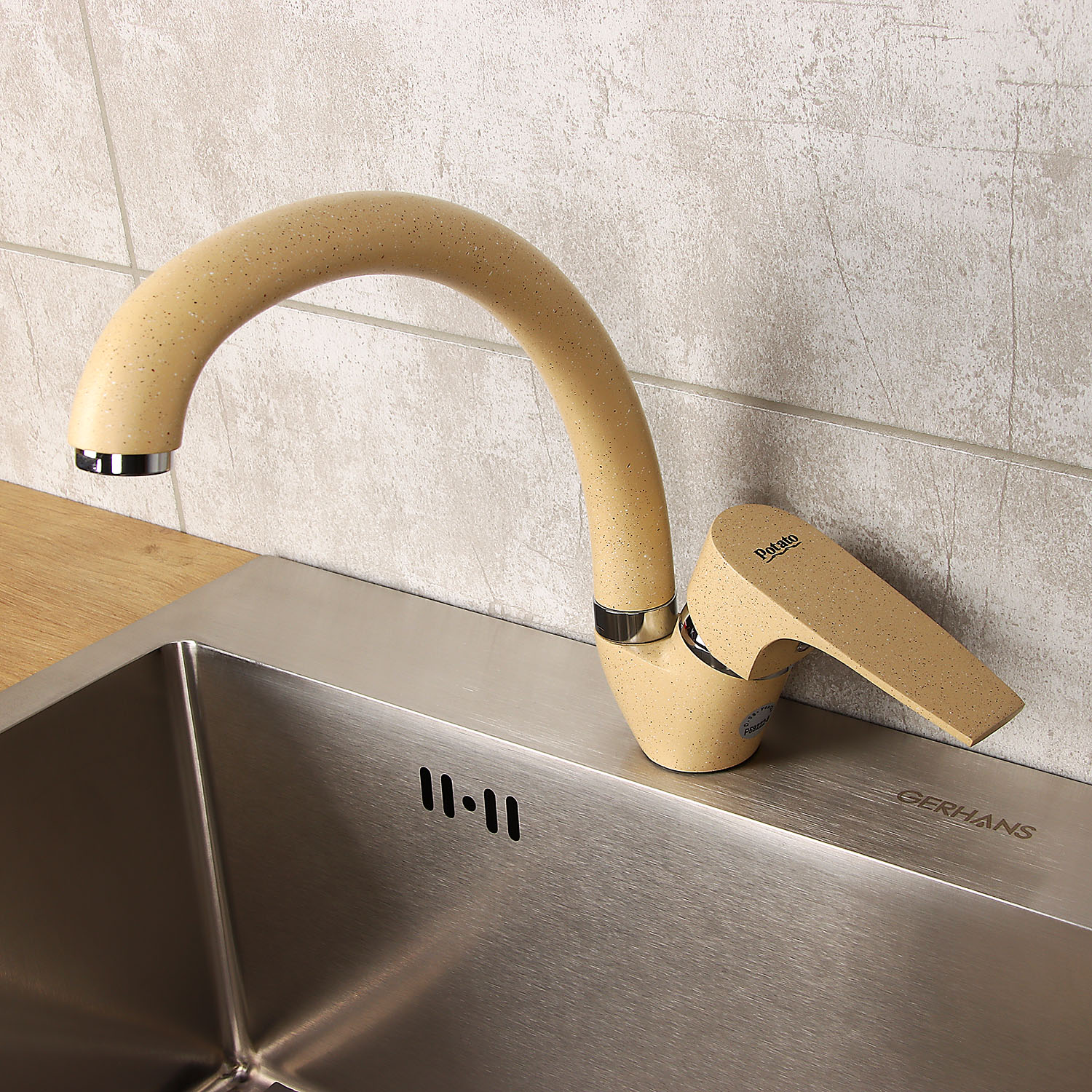 Смеситель для кухни Potato P59222-9 высокий излив (кремовый) *1/10