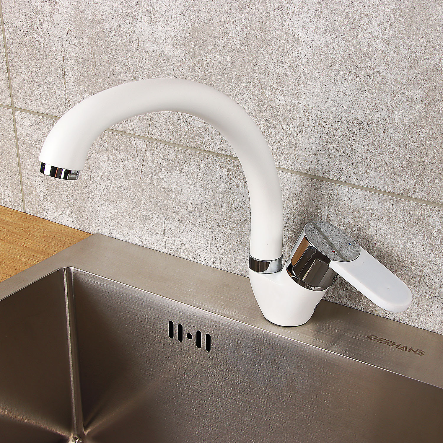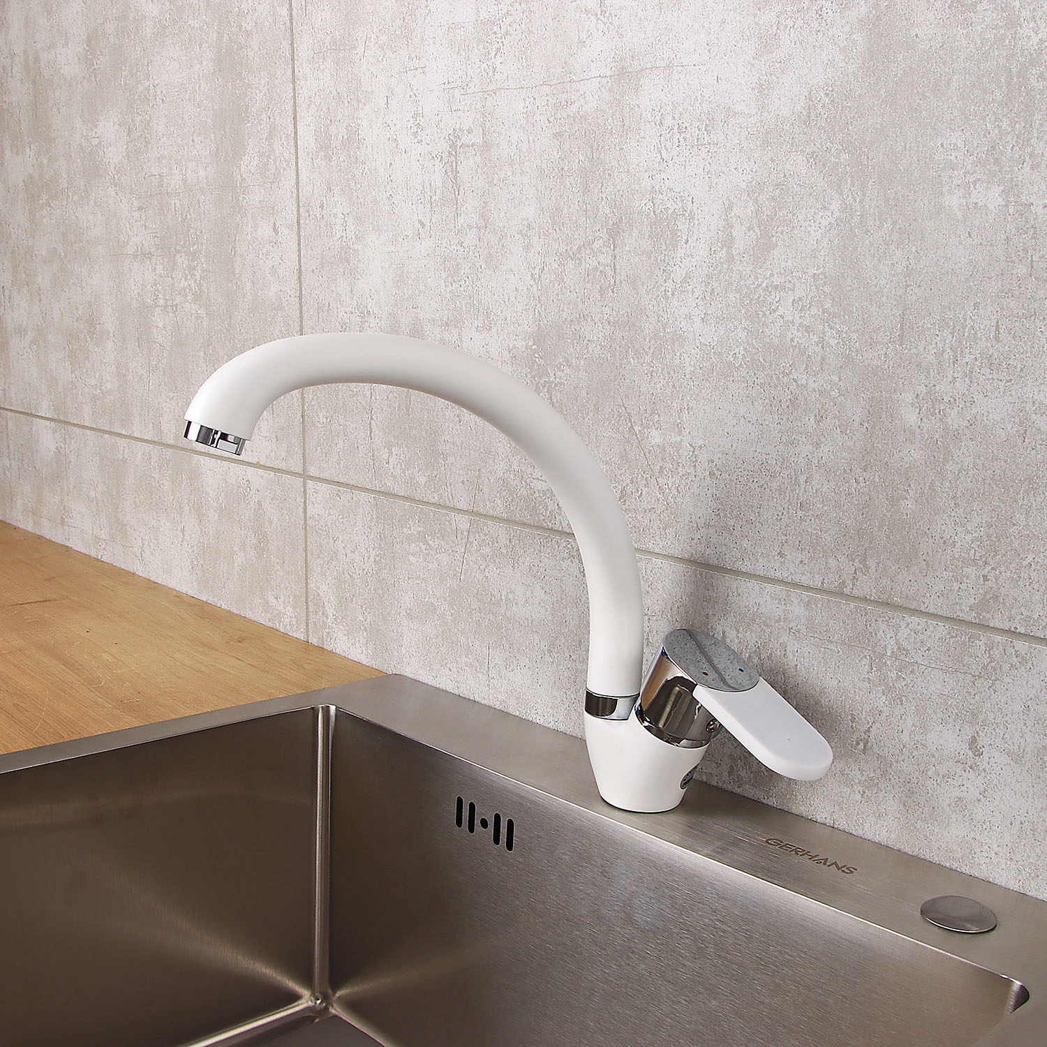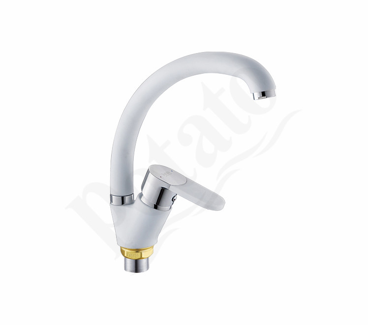 Смеситель для кухни Potato P59223-7 высокий излив (белый, хром) *1/10