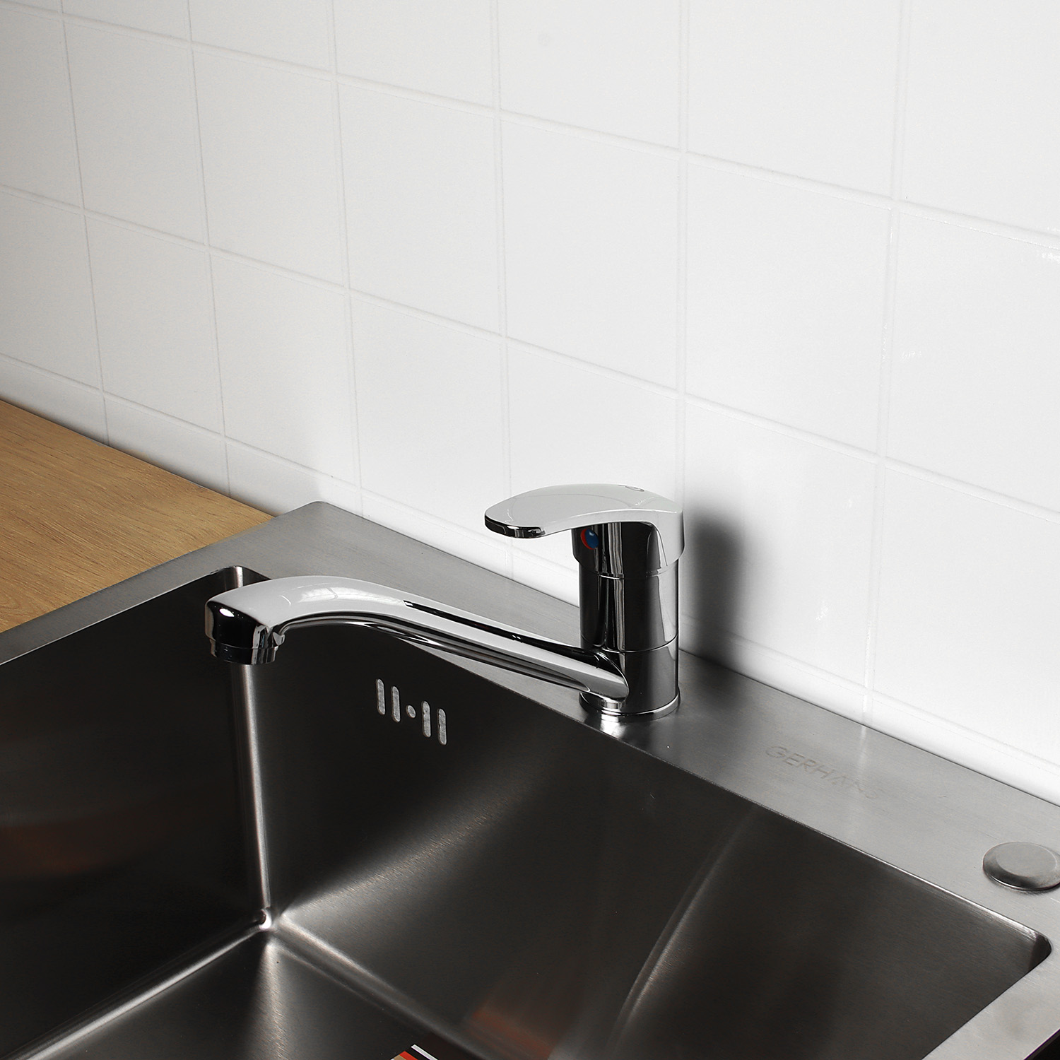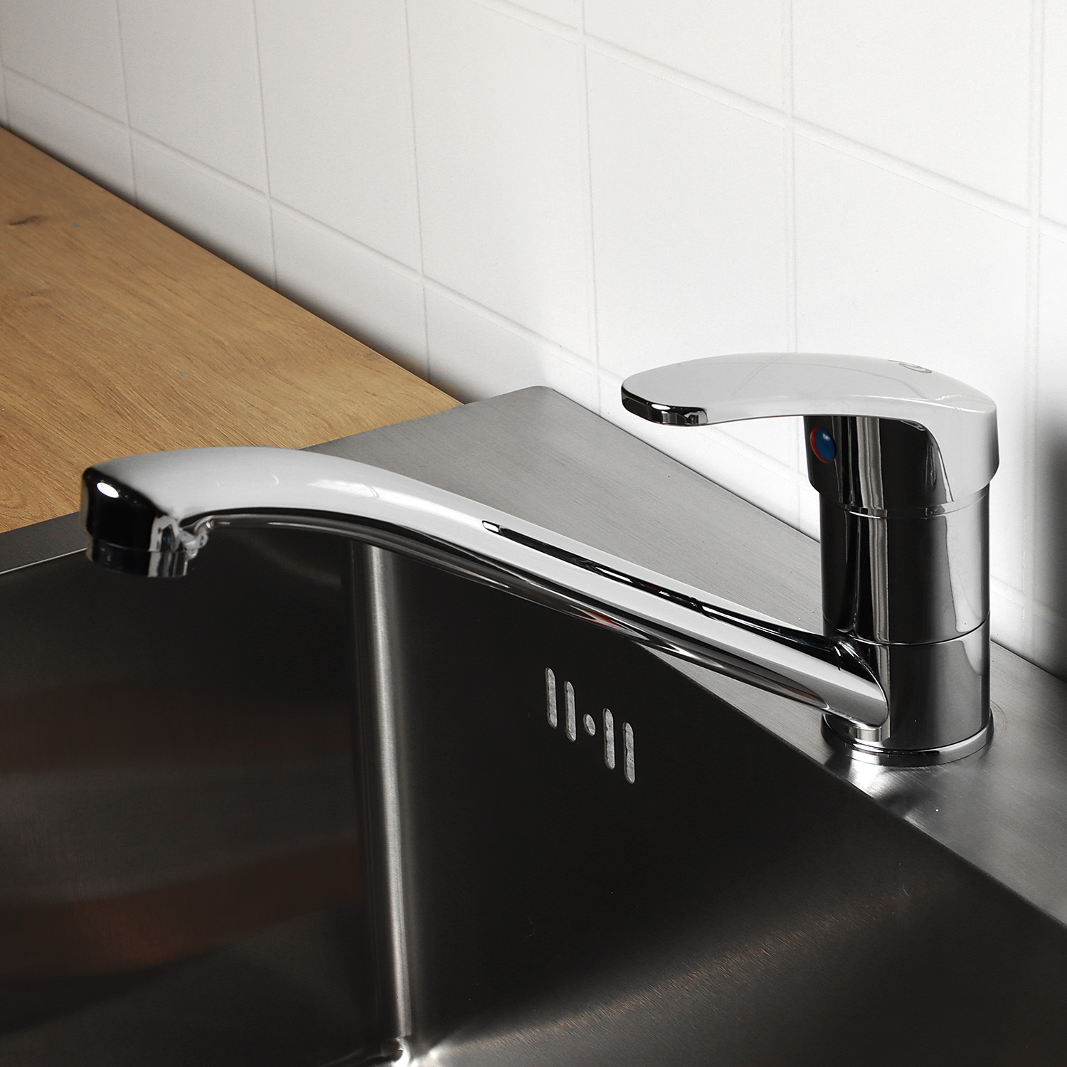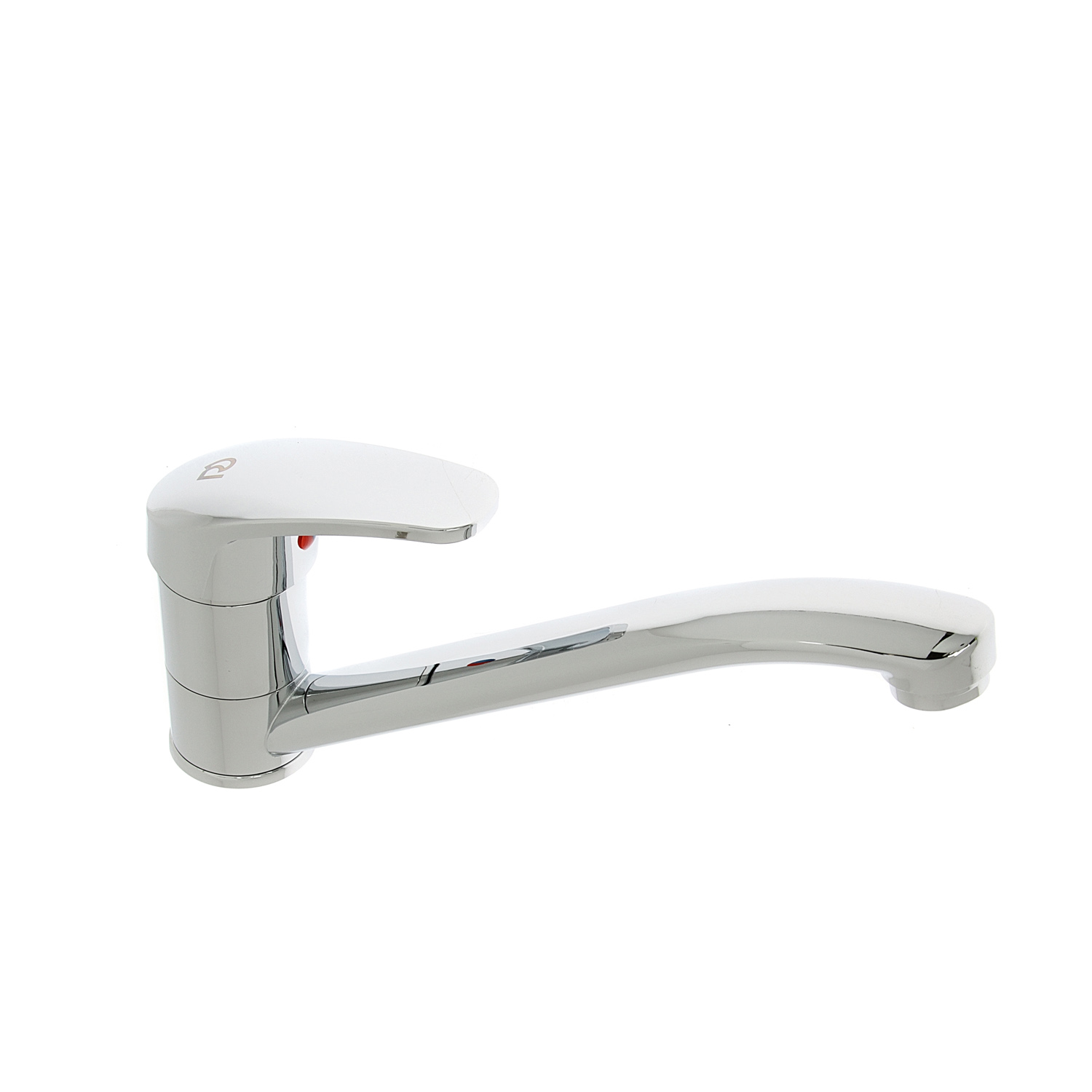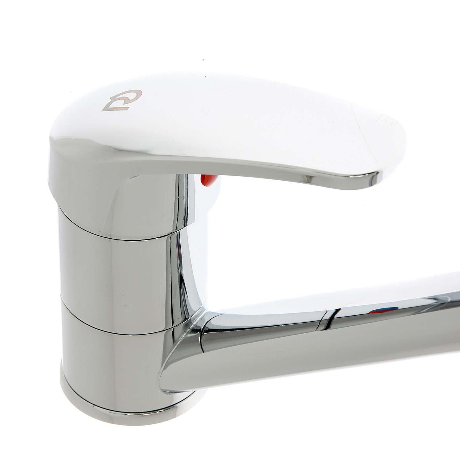 Однозахватный смеситель с пластиковой ручкой и картриджем 35 мм, аэратором типа "Бенц". Подводка для воды 30 см - в комплекте. Гарантия на корпус - 3 года.