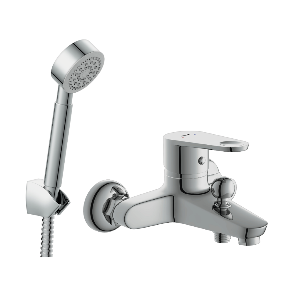 Комплектация: смеситель для ванной, душевой набор (душевая лейка, держатель лейки, душевой шланг); S-образные эксцентрики 65 гр., крепеж