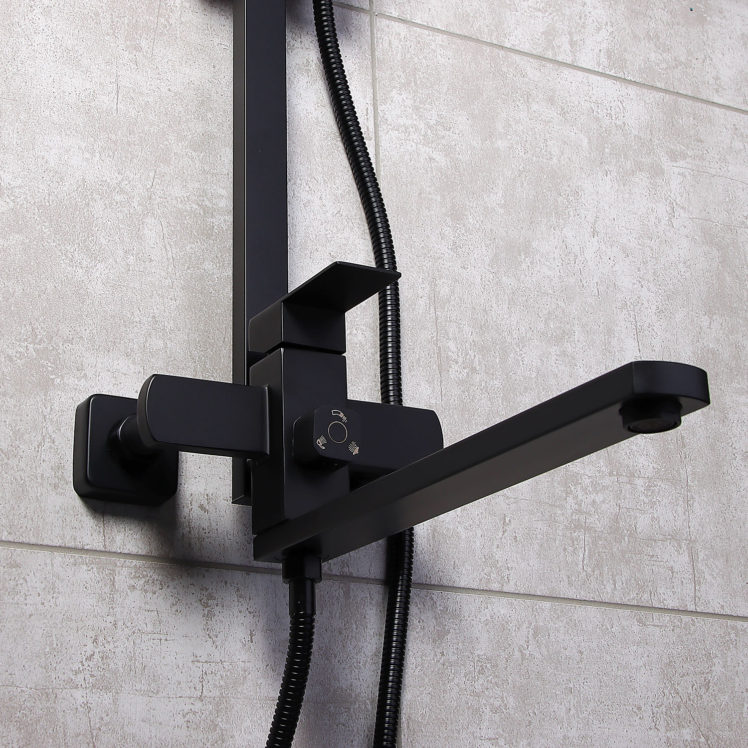 Смеситель д/ванны со стойкой для душа + ручной душ Fmark FS8145-35H черная *1