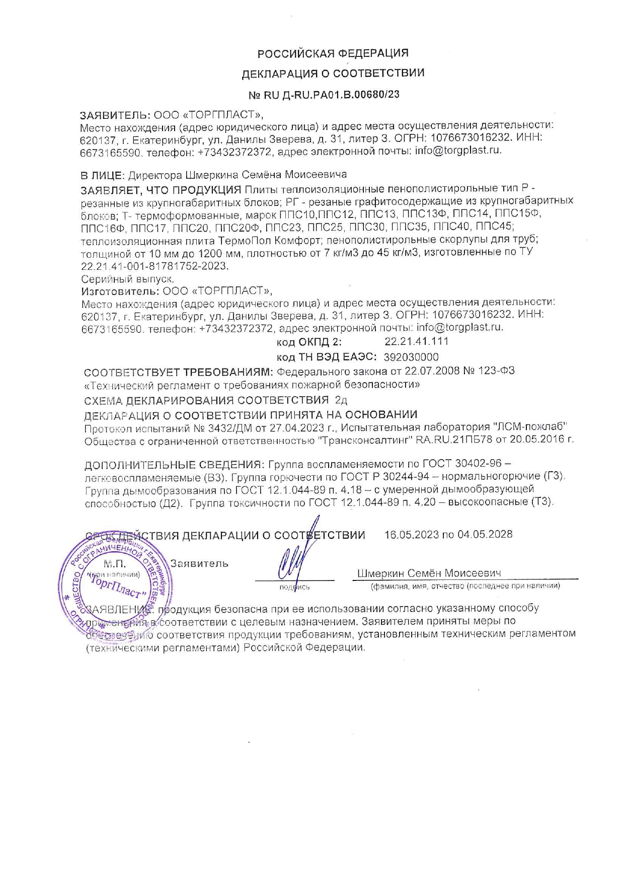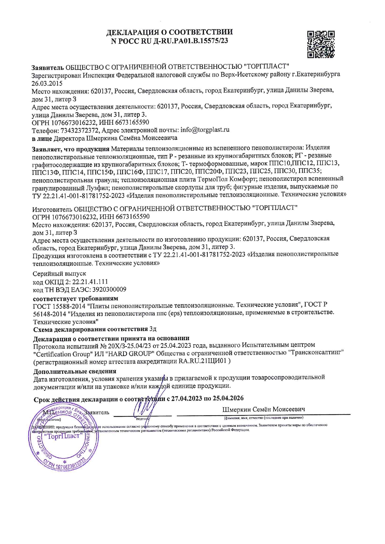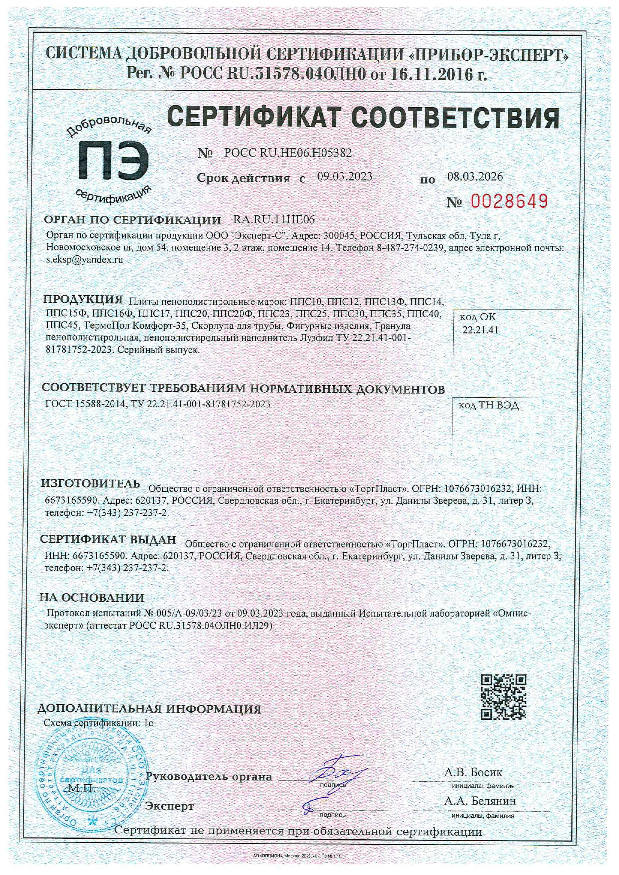 Пенопласт ППС-10 ТУ (ПСБ-С М15) 1000×1000×100 мм, ГК Пенопласт