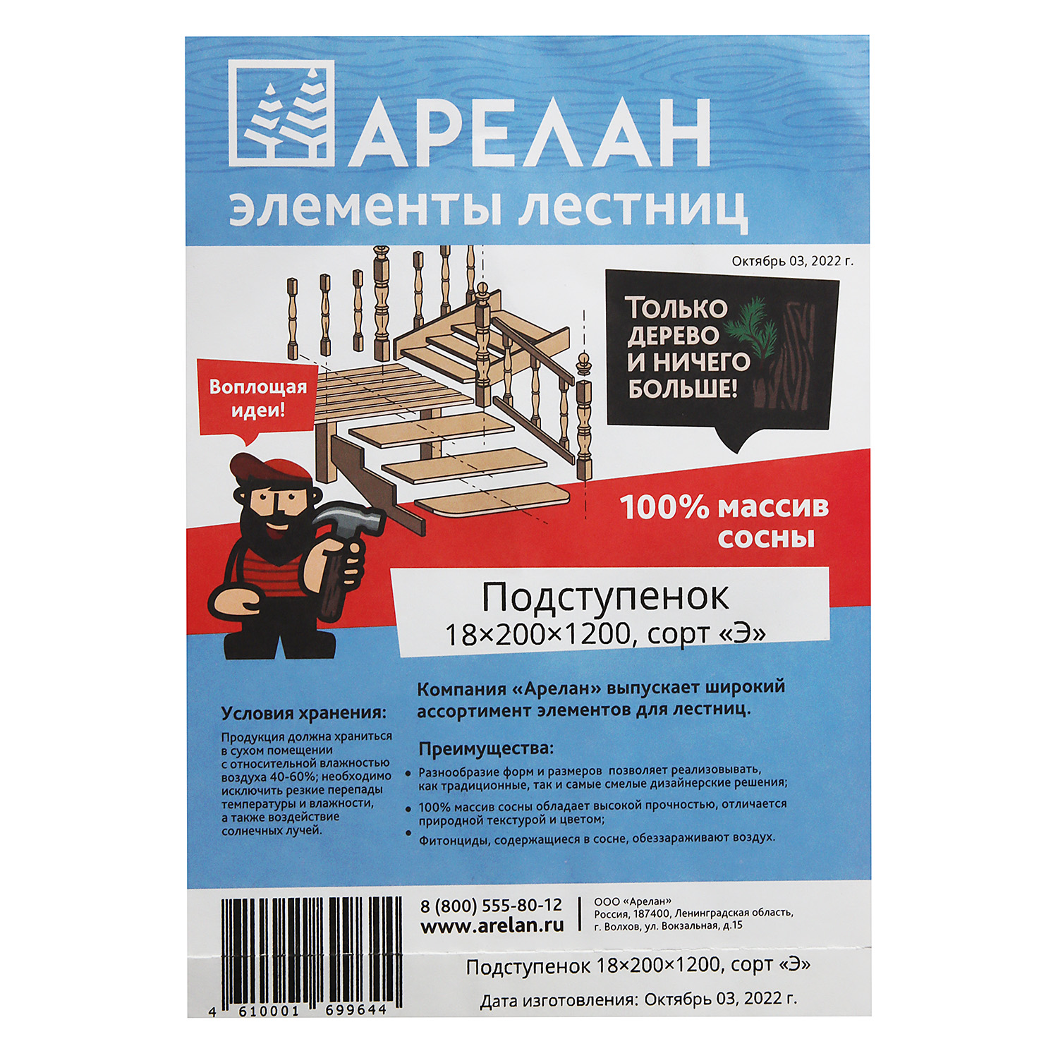 Подступенок 18*200*1200мм сорт Экстра Арелан *4