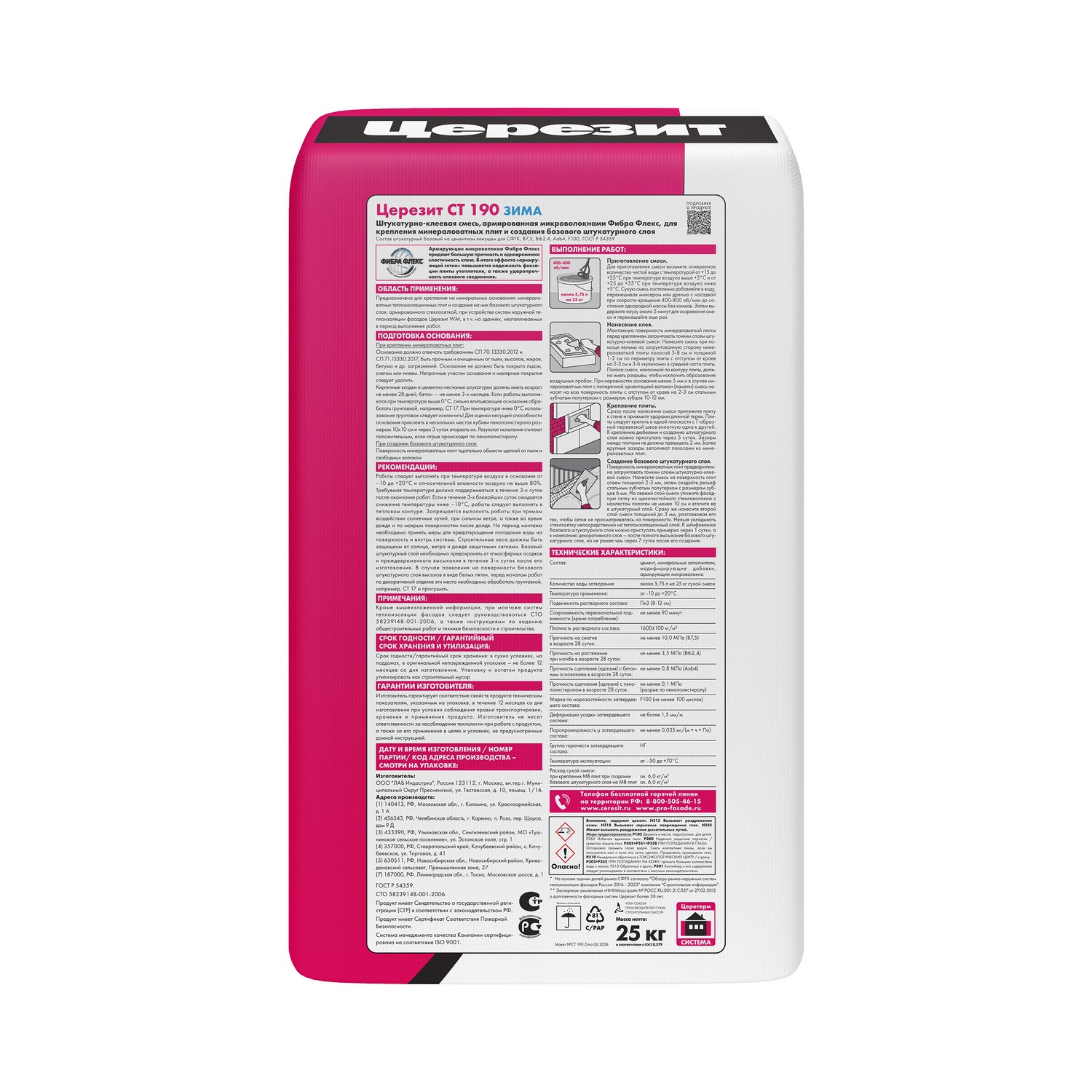 Смесь штукатурно-клеевая для минераловатных плит CT190 25кг зима/лето Церезит *1/48
