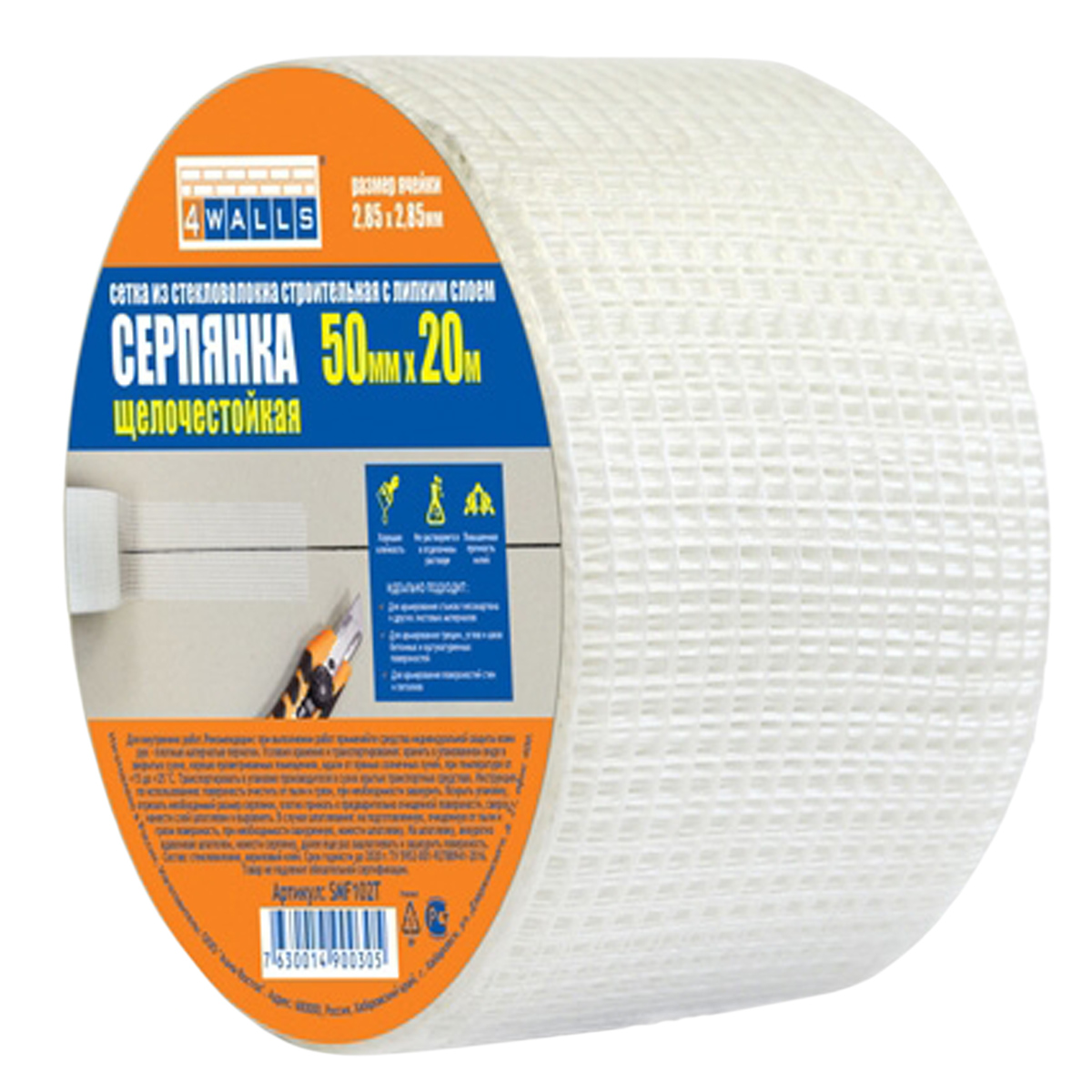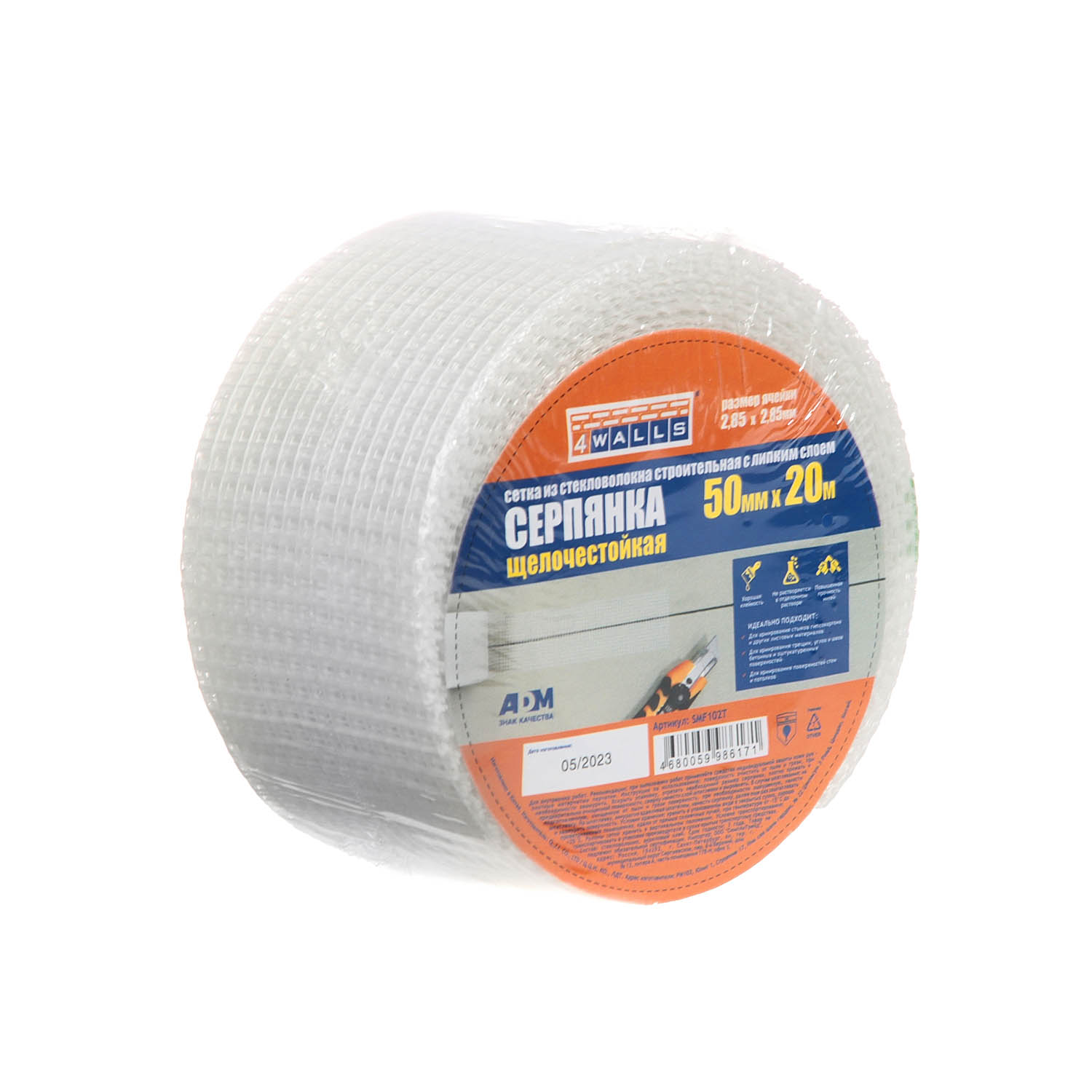 Сетка стр. армирующая "серпянка" самоклеящ. 0,05м х 20м "4WALLS" SMF 102Т (А.Д.М.) *1/72