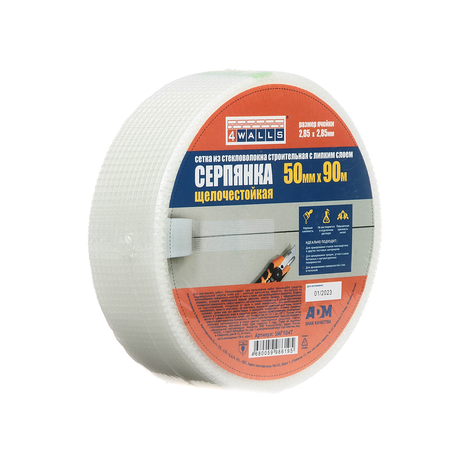 Сетка стр. армирующая "серпянка" самоклеящ. 0,05м х 90м "4WALLS" SMF 104Т (А.Д.М.)*1/24