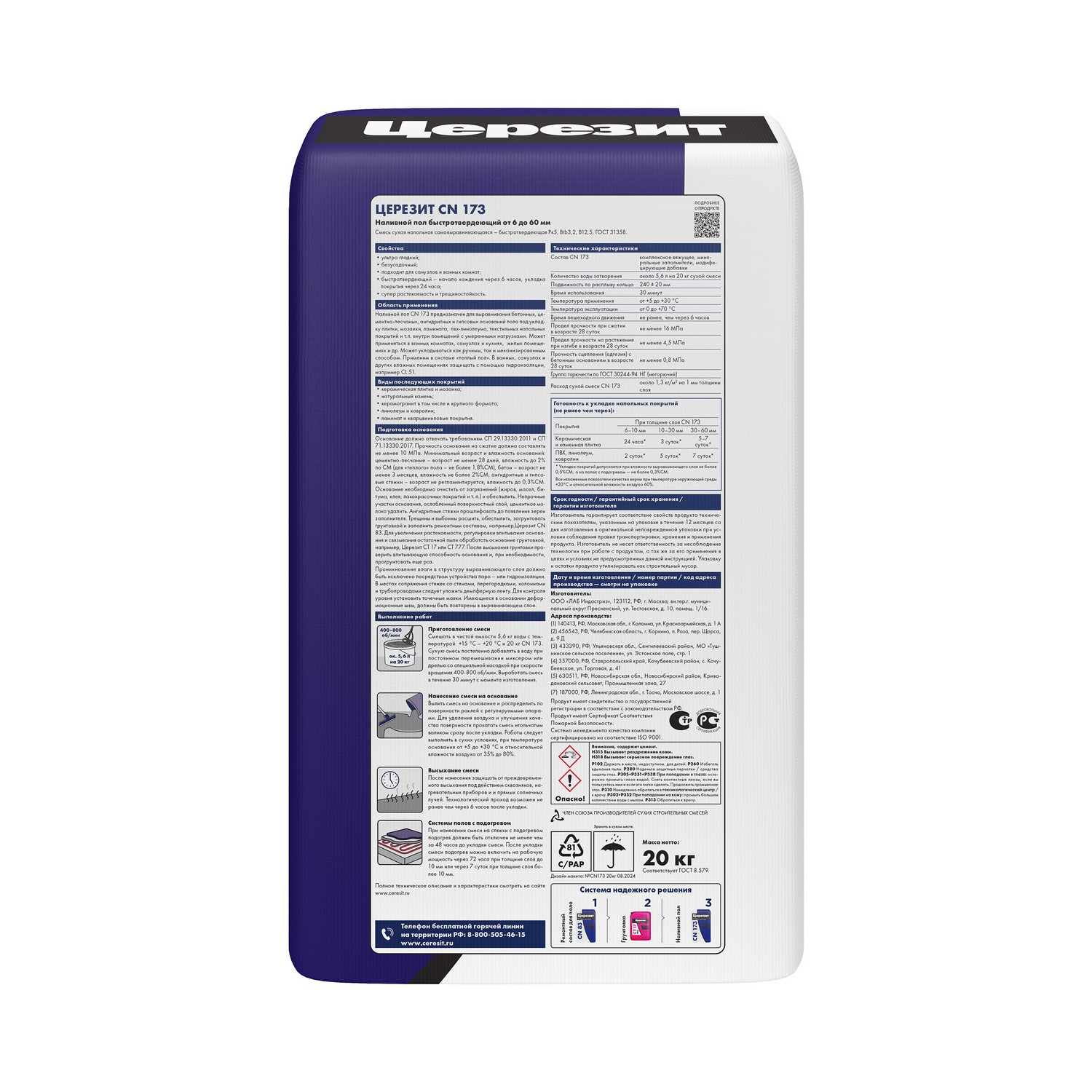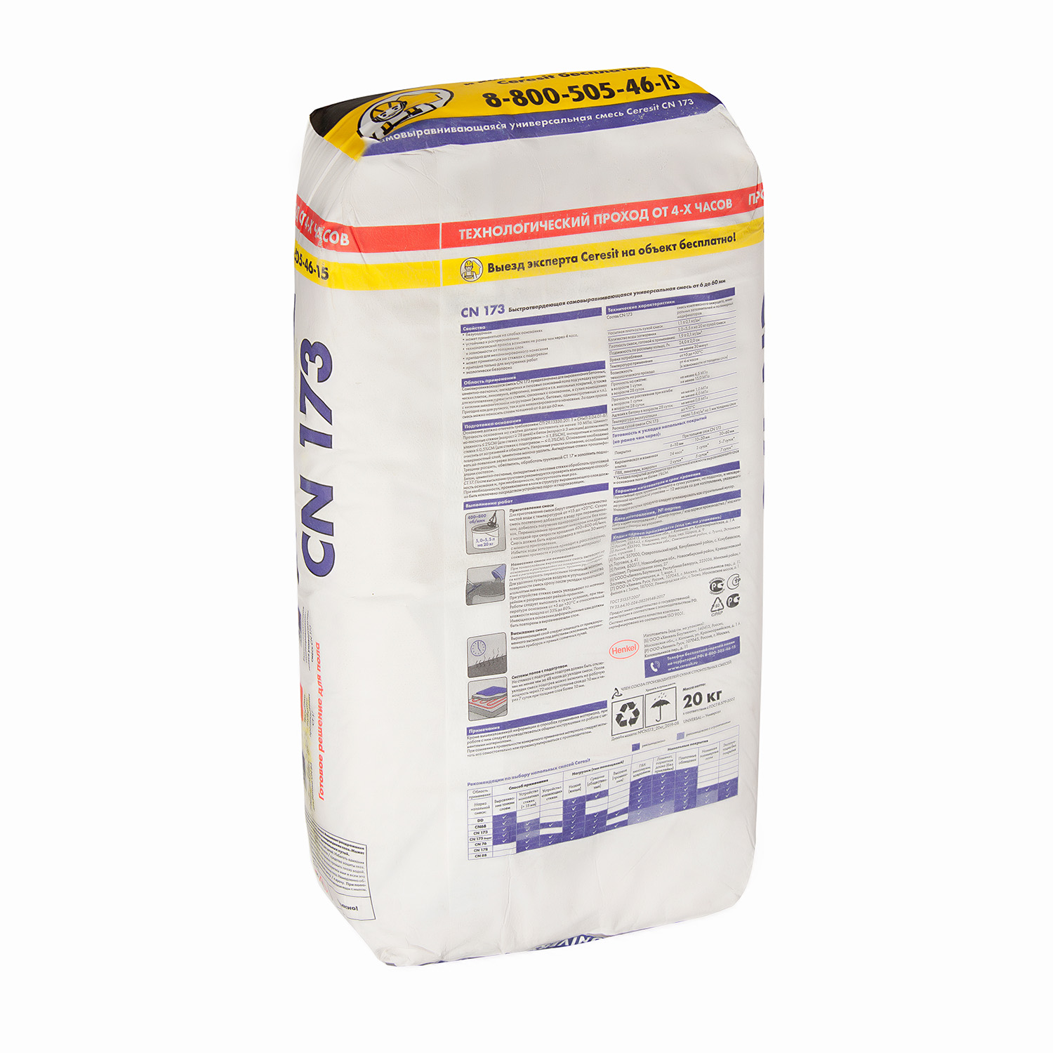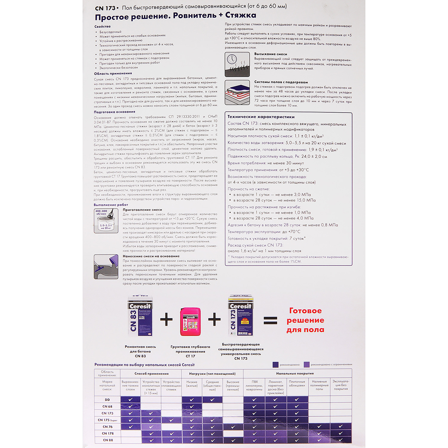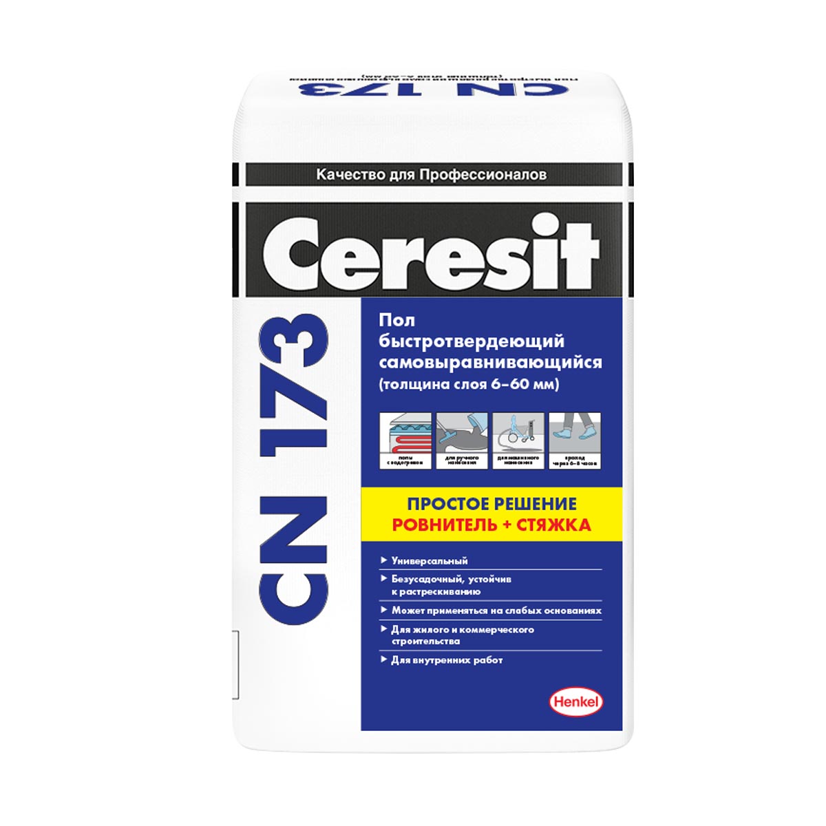 Самовыравнивающаяся смесь CN 173 предназначена для выравнивания бетонных, цементно-песчаных, ангидритных и гипсовых оснований пола под укладку керамических плиток, линолеума, ковролина, ламината и т.п.